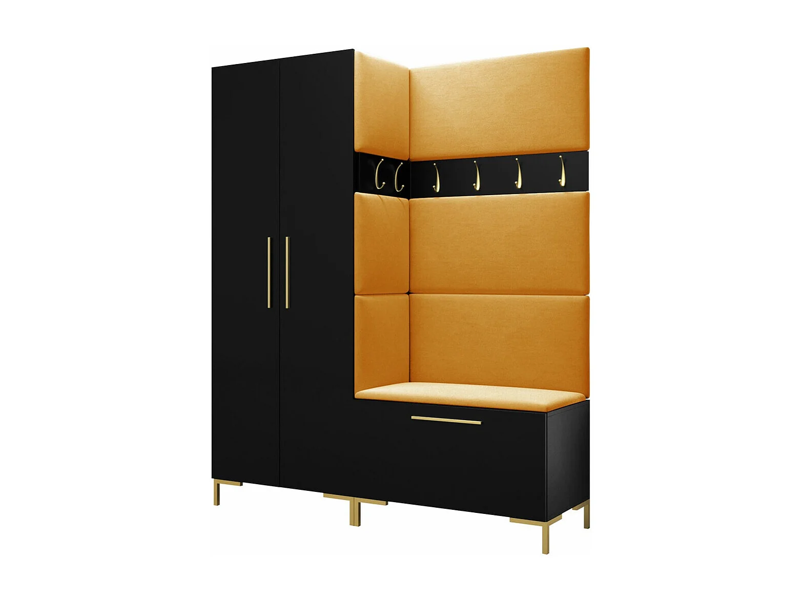 Meuble d'entrée Tivsoa 100, 196x158x44cm, Noir, Tissu|Stratifié, À poser|Murale