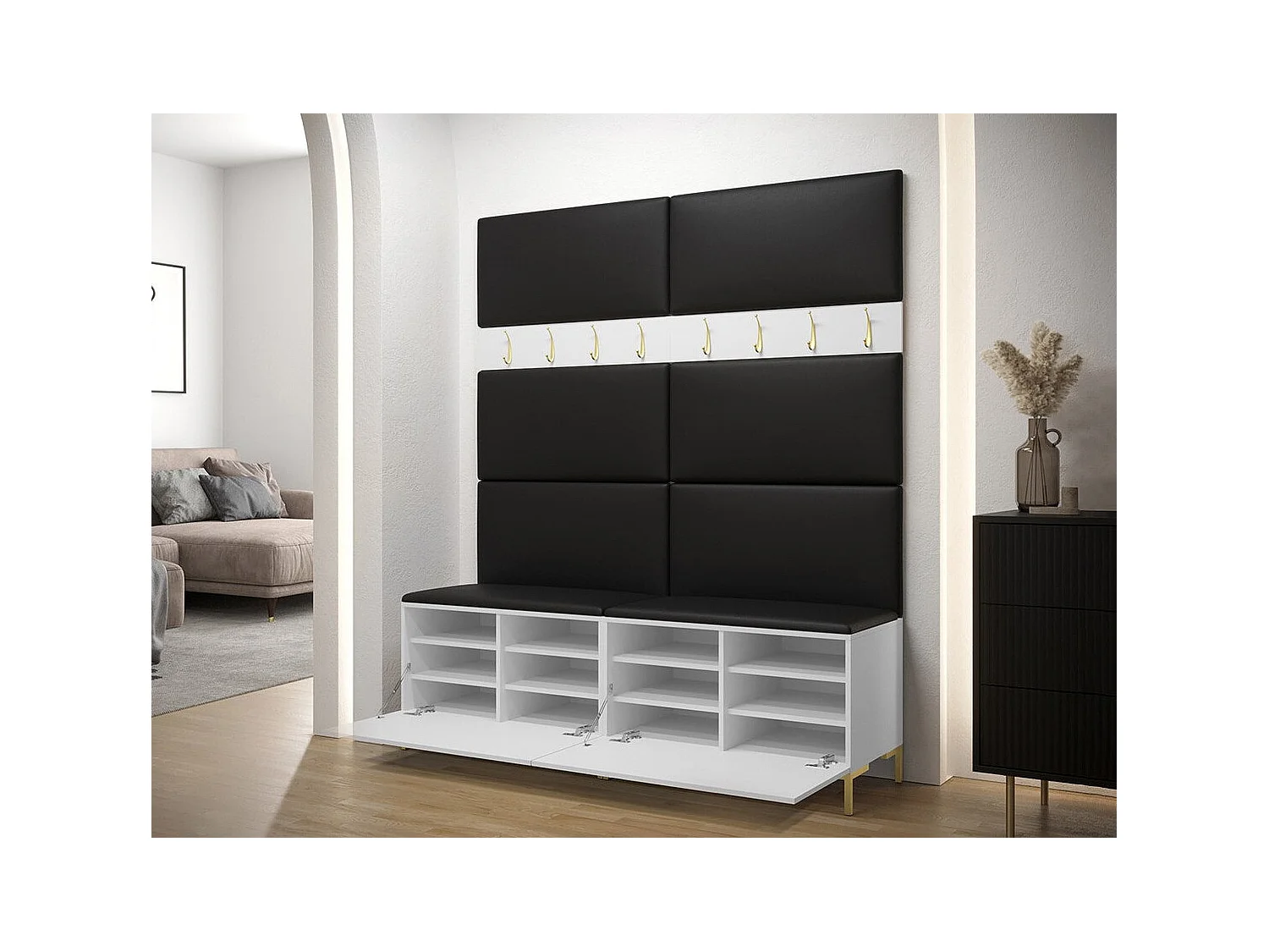 Meuble d'entrée Tivsoa 101, 196x168x46cm, Noir, Stratifié|Faux cuir, Murale|À poser