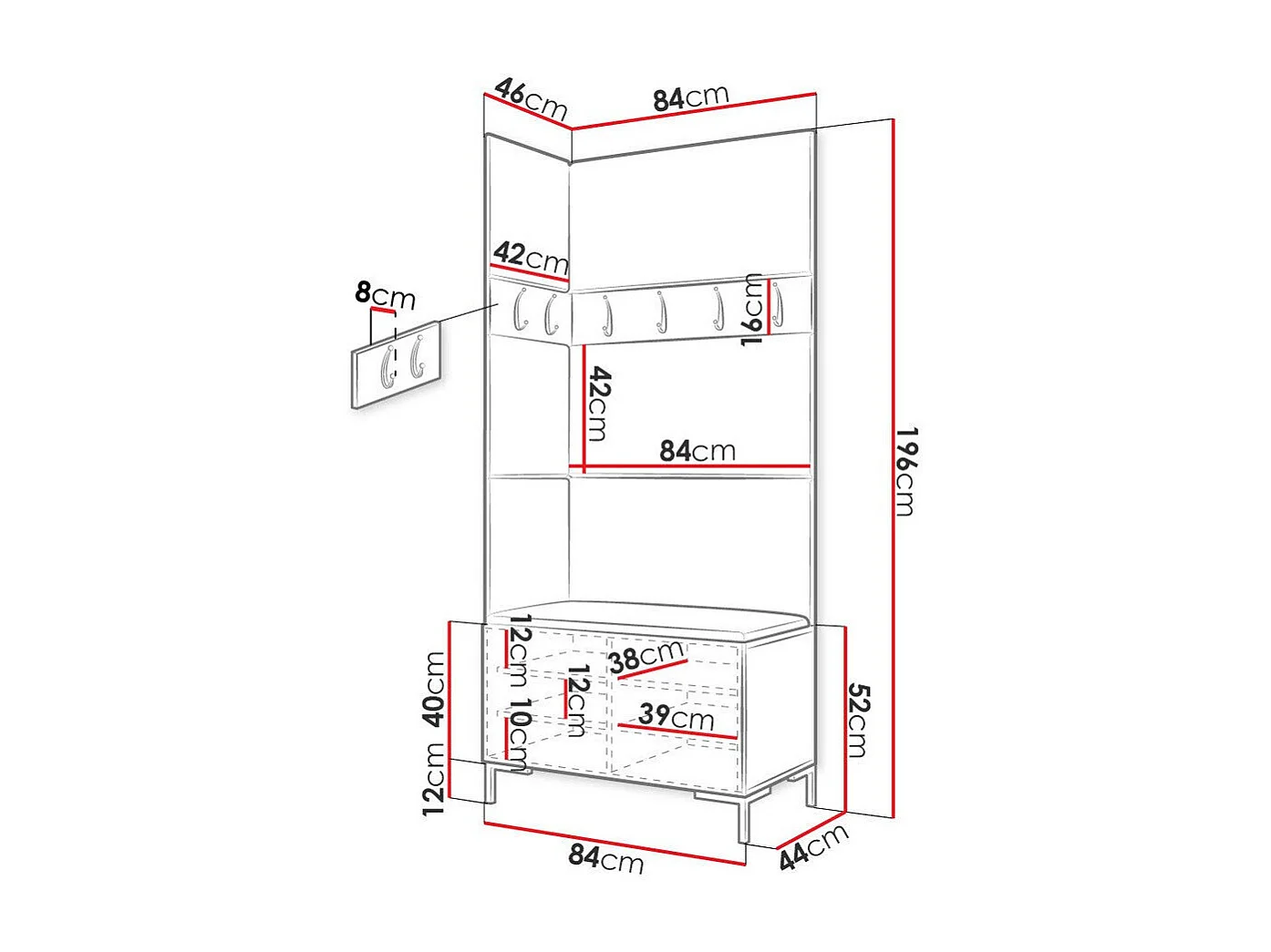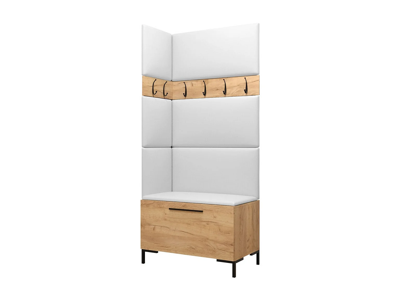 Meuble d'entrée Tivsoa 103, 196x84x46cm, Craft chêne, Faux cuir|Stratifié, À poser|Murale
