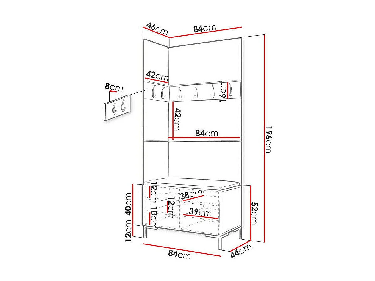 Meuble d'entrée Tivsoa 103, 196x84x46cm, Craft chêne, Tissu|Stratifié, Murale|À poser