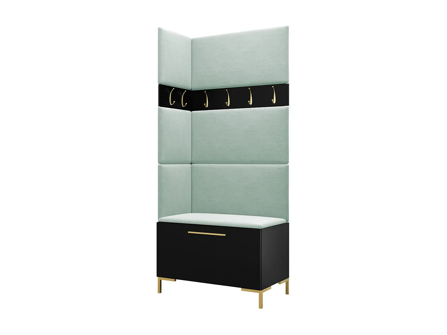 Meuble d'entrée Tivsoa 103, 196x84x46cm, Noir, Tissu|Stratifié, Murale|À poser