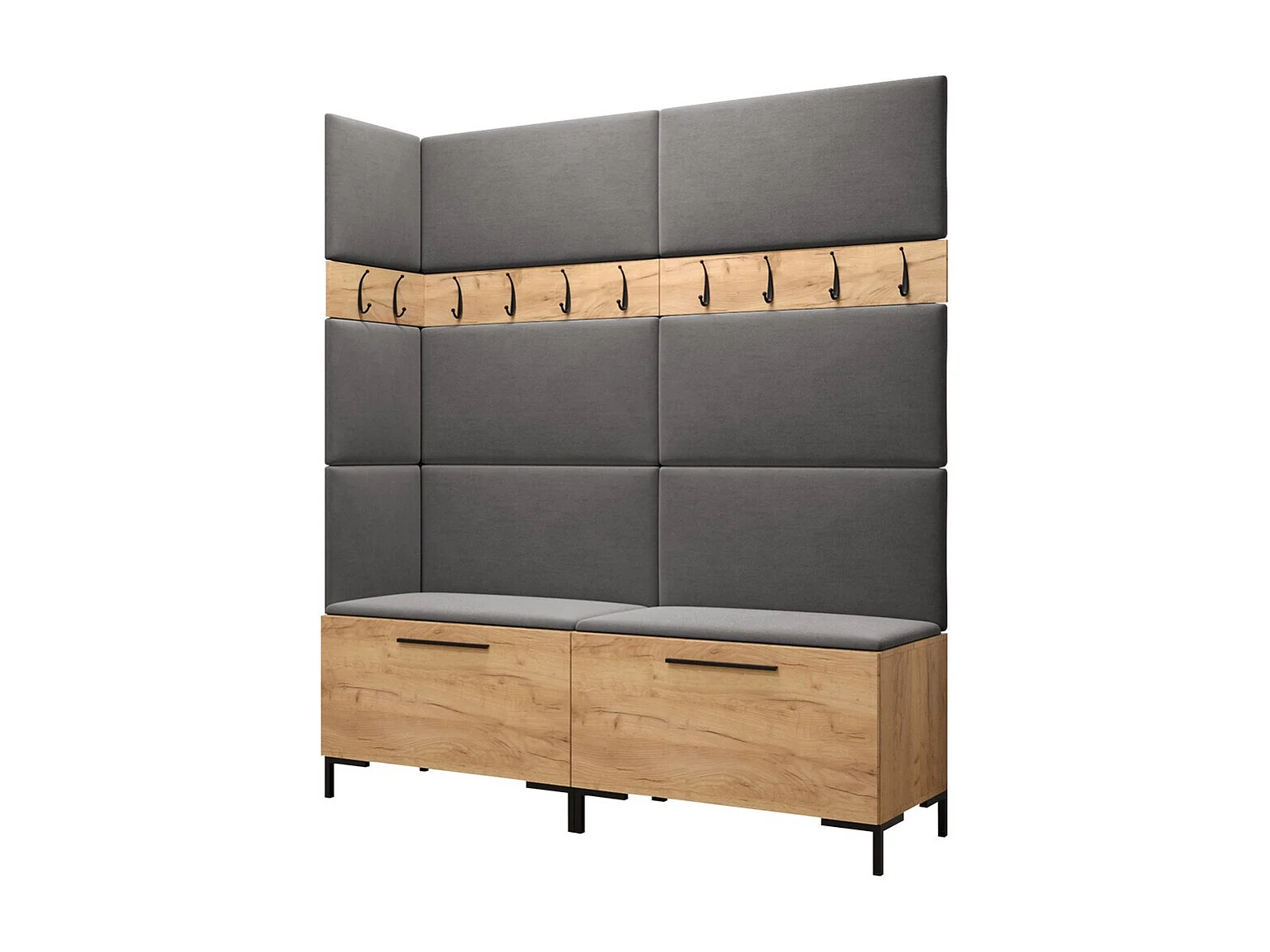Meuble d'entrée Tivsoa 104, 196x168x46cm, Craft chêne, Stratifié|Tissu, À poser|Murale