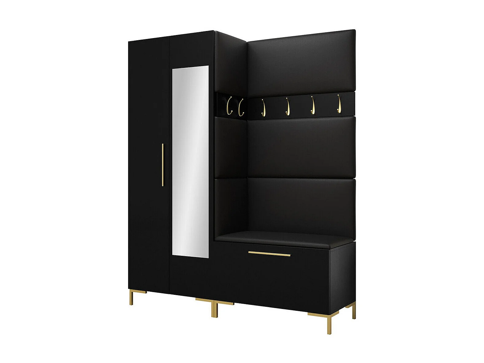 Meuble d'entrée Tivsoa 107, 196x158x46cm, Disponible, Noir, Tissu|Stratifié