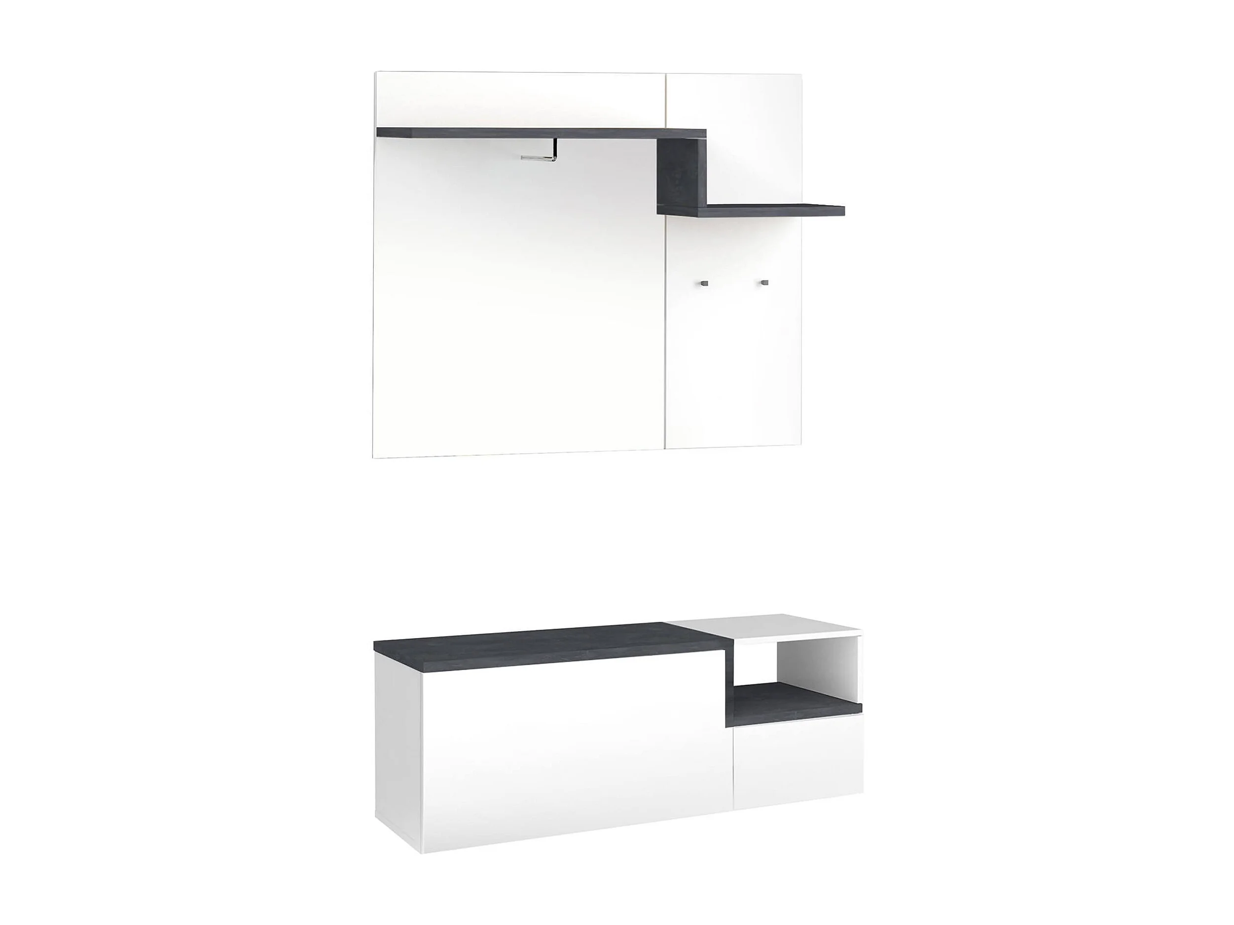 Meuble d'entrée Yuri, entrée multifonction moderne, casier polyvalent pour hall d'entrée, 100% Made in Italy, 120x40h54 cm, blanc brillant et ardoise