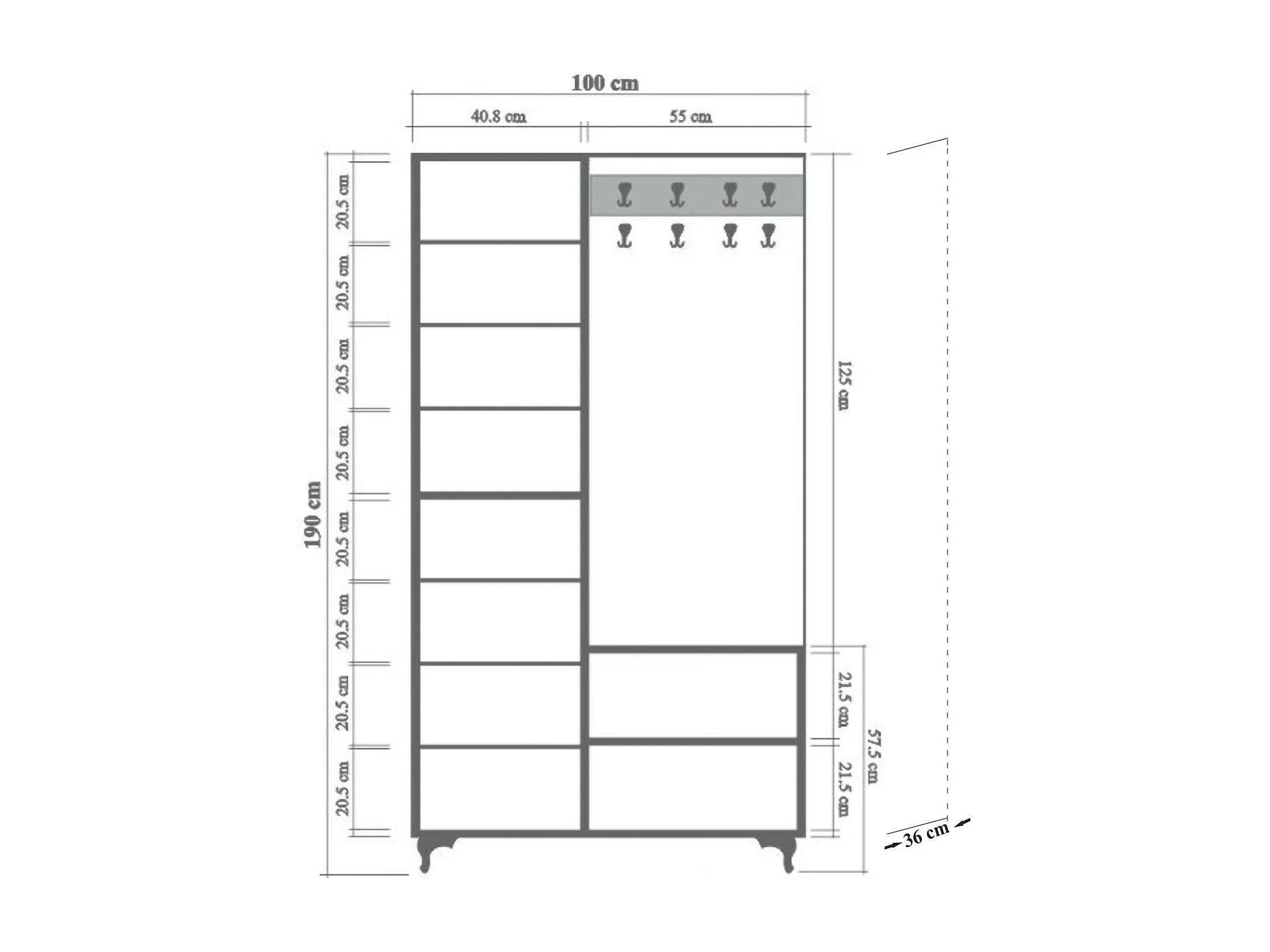 Meuble d'entrée Zephyr, Crochet d'entrée, Composition pour l'atrium, Console de rangement multifonction, 100x36h190 cm, Chêne et Multicolore