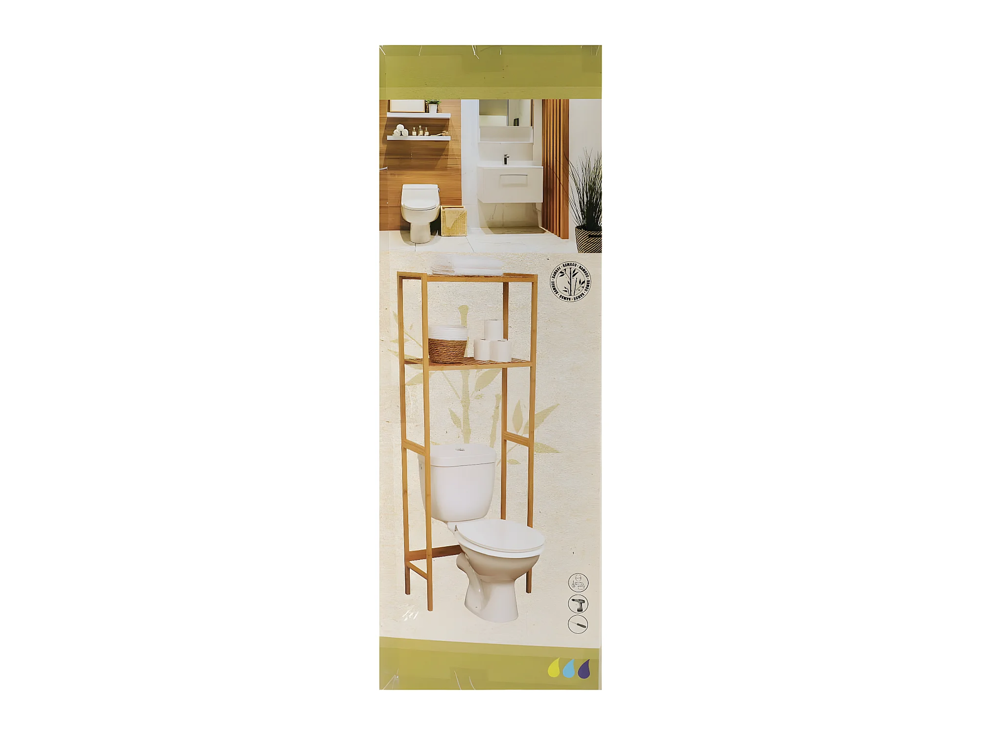 Meuble dessus de Toilettes WC avec 2 Étagères en Bambou H 161 cm