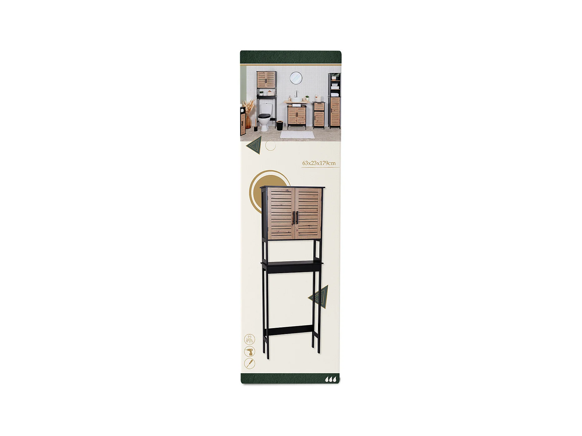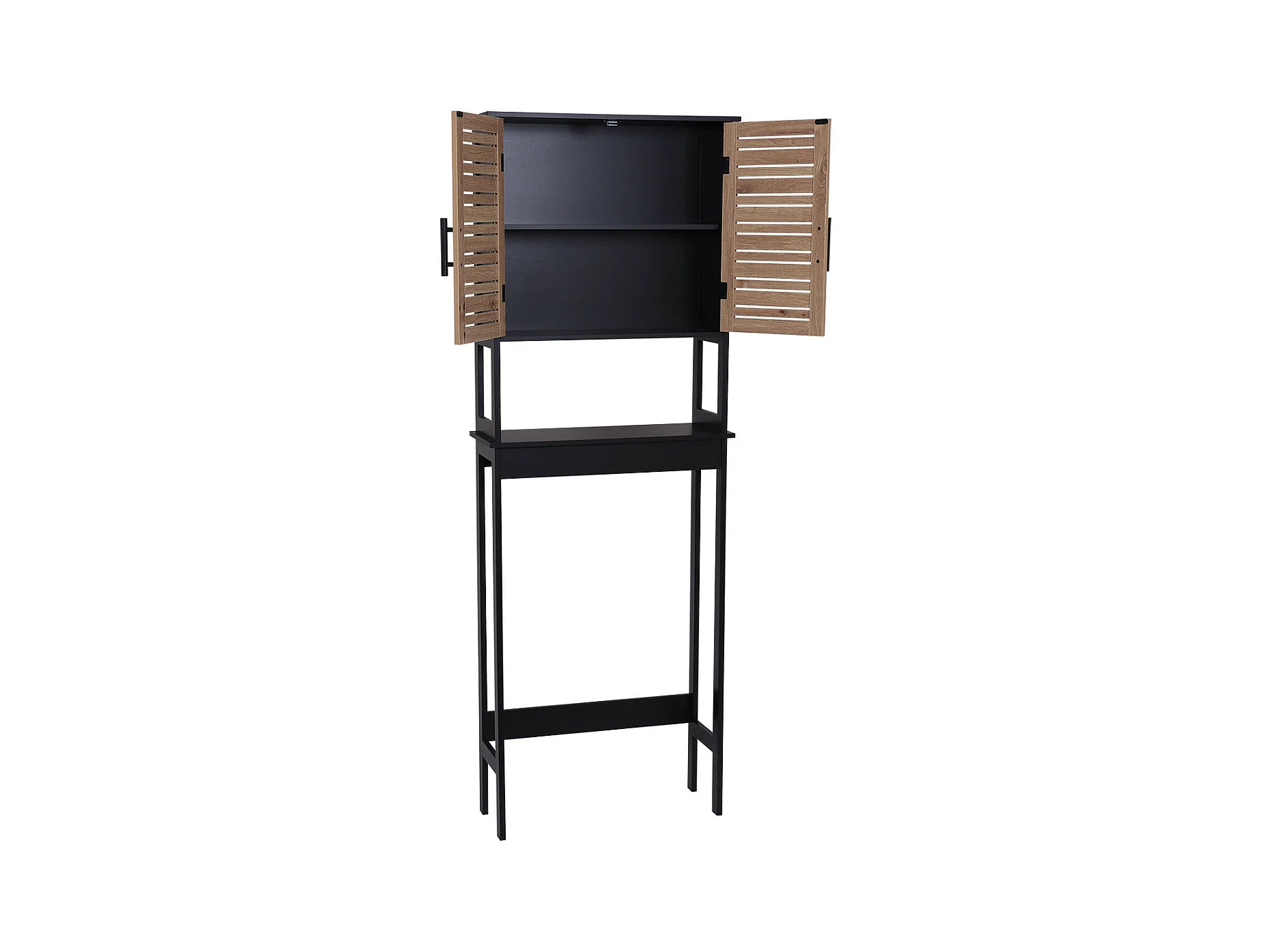 Meuble dessus de Toilettes WC 2 Portes 1 Etagère et 1 Tablette H 179 cm - Noir