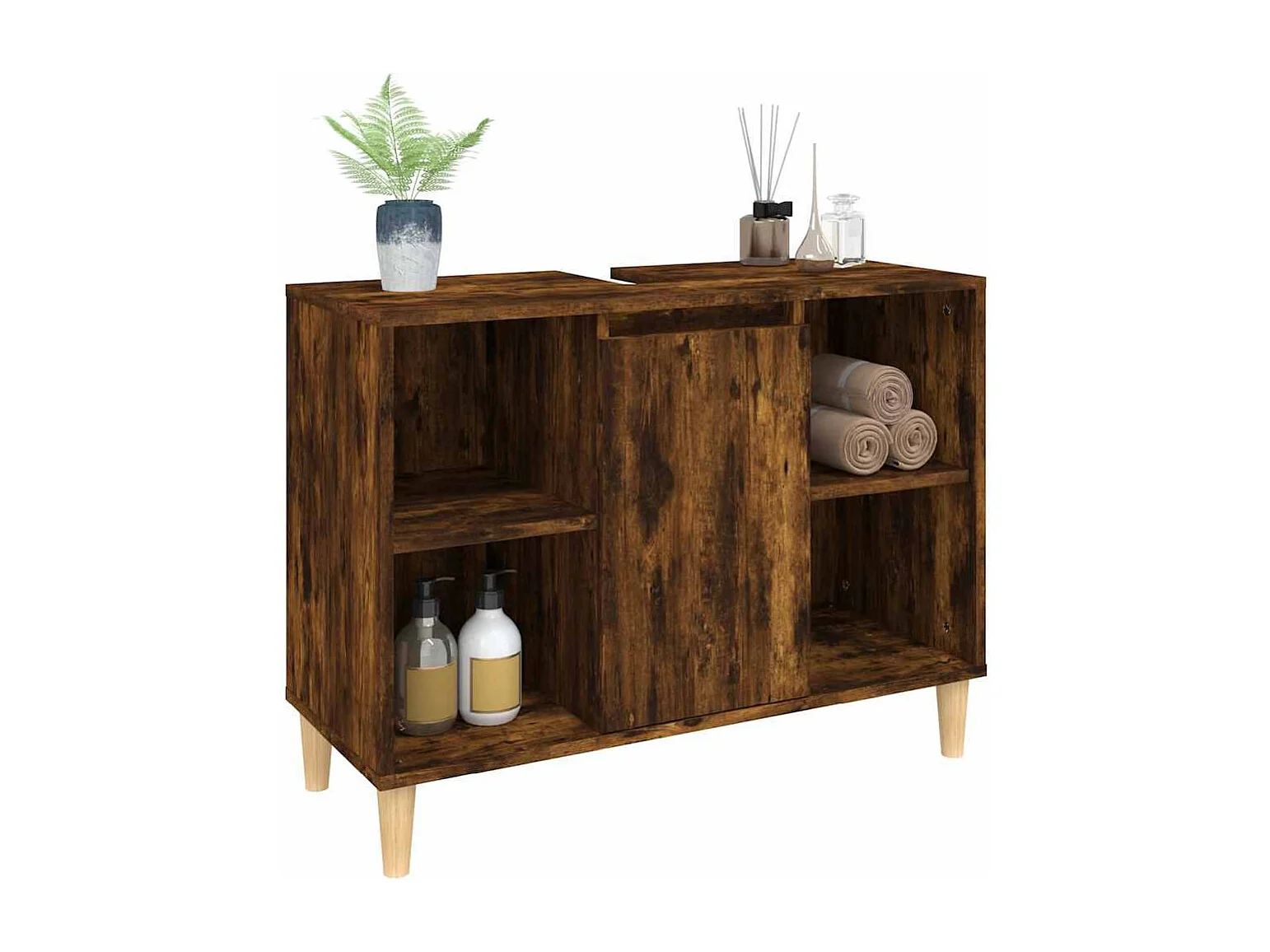 Meuble d'évier chêne fumé 80x33x60 cm bois d'ingénierie
