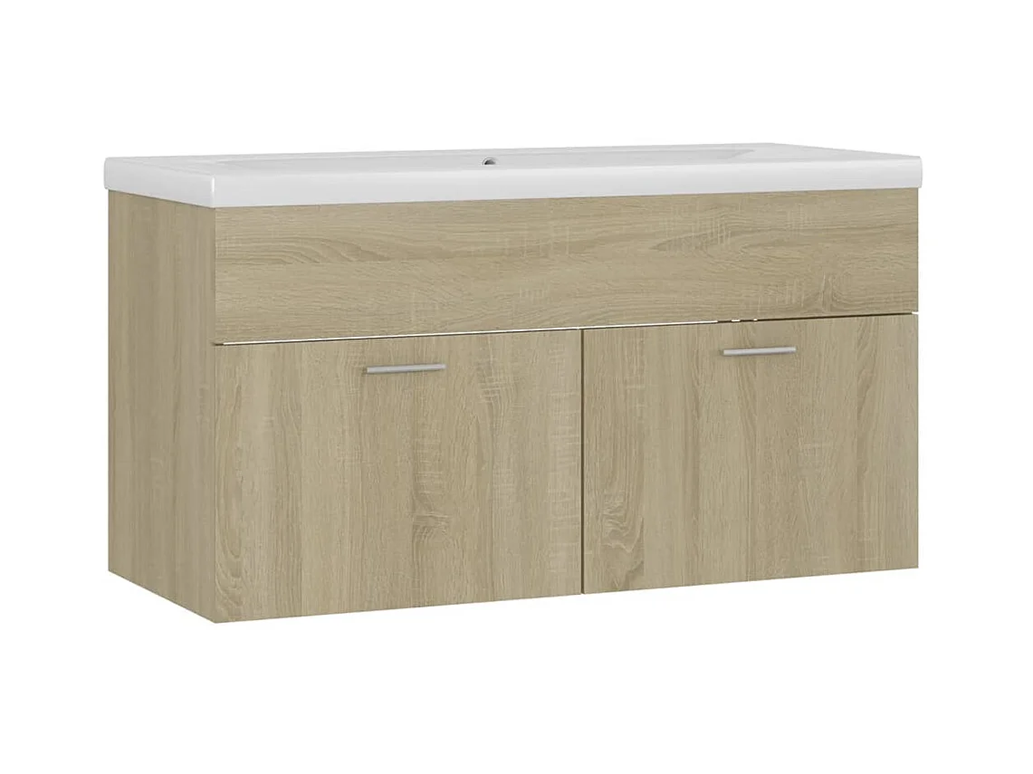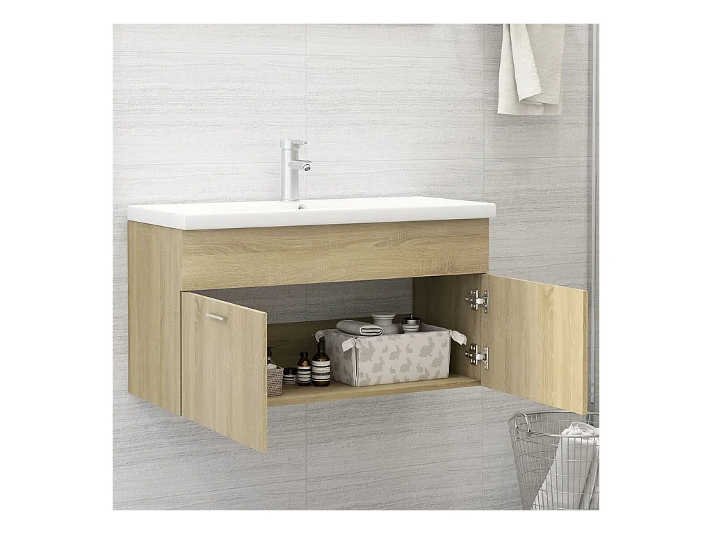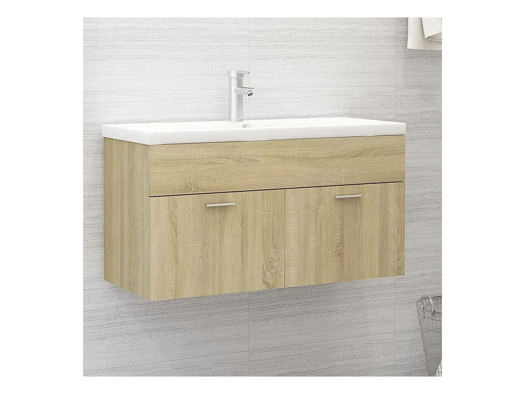 Meuble d'évier+ vasque intégré Chêne sonoma Aggloméré WVGQ5284