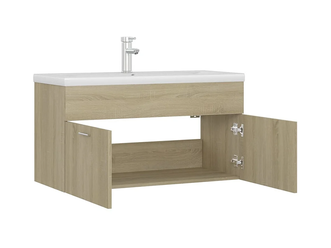 Meuble d'évier+ vasque intégré Chêne sonoma Aggloméré WVGQ6215