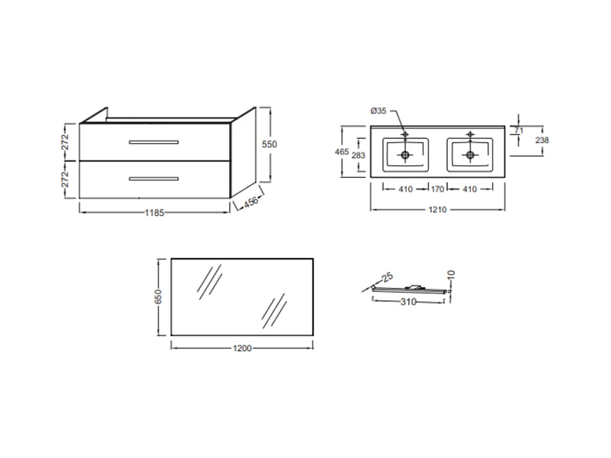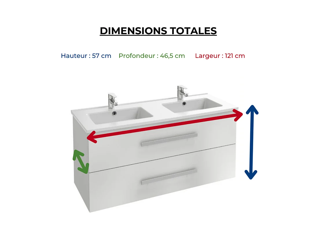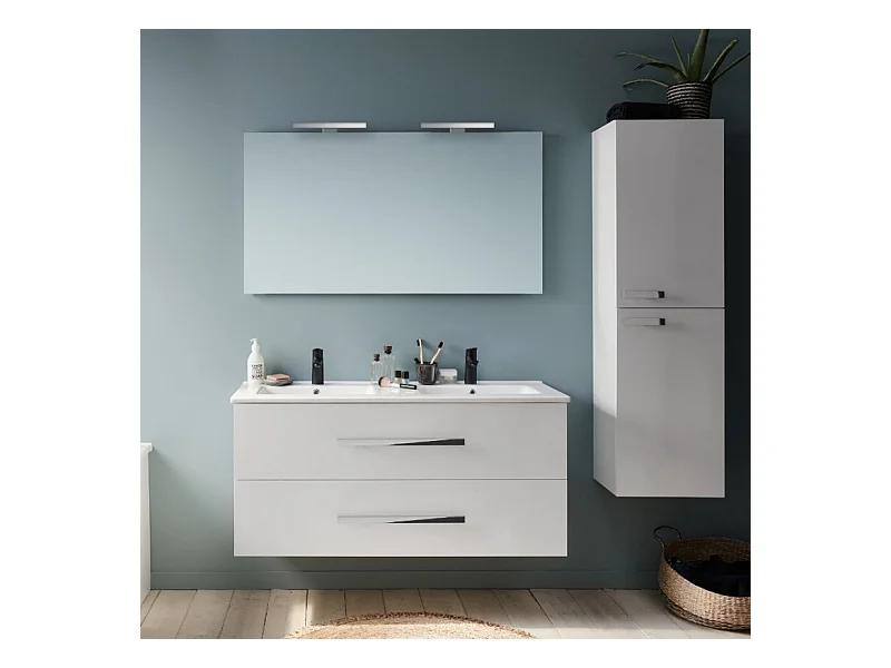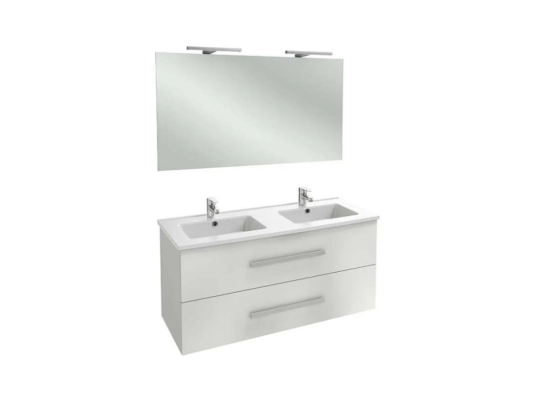 Pack meuble double vasque 120 cm JACOB DELAFON Ola Up + miroir + spot