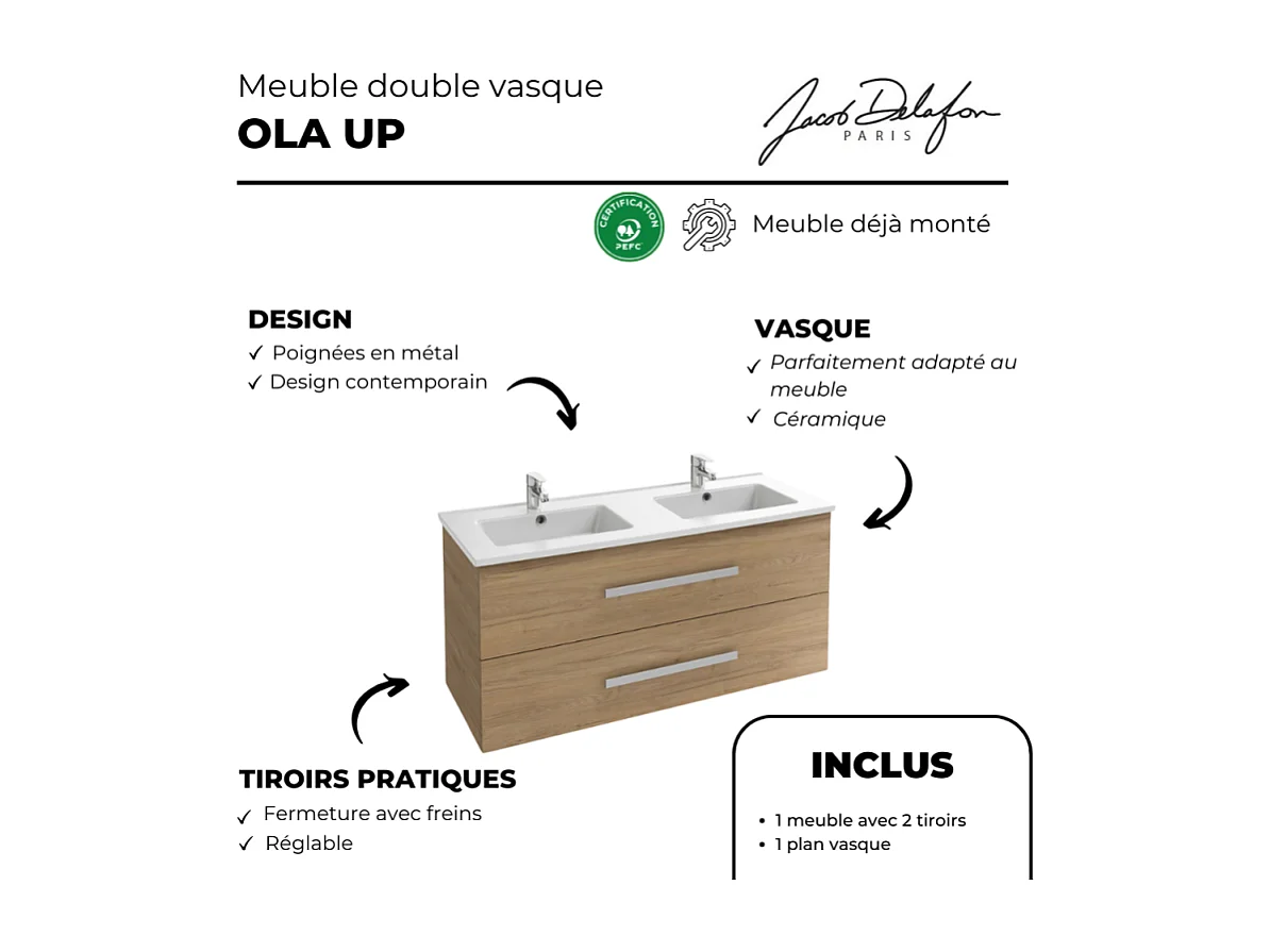 Meuble double vasque 120 cm JACOB DELAFON Ola UP Chene Colorado