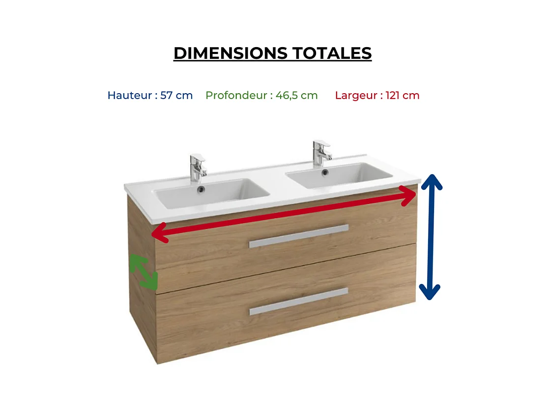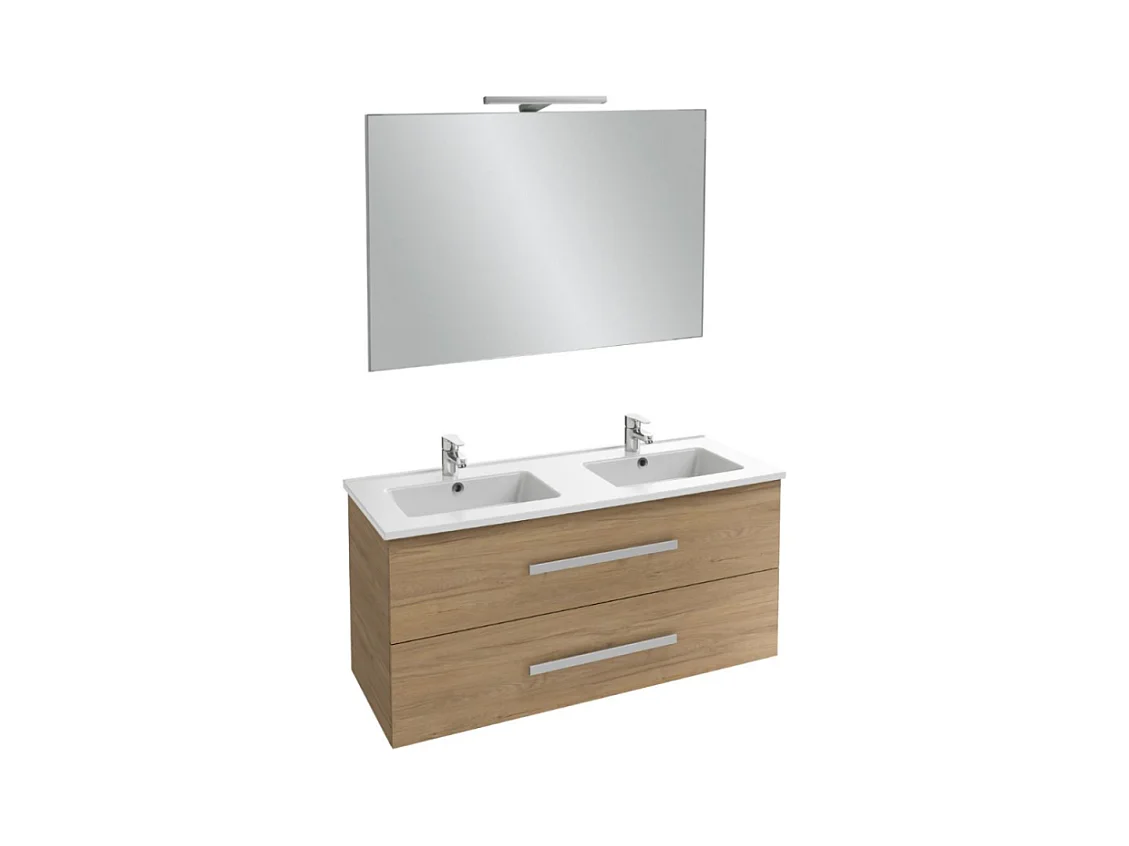 Meuble double vasque 120 cm JACOB DELAFON Ola Up chêne colorado avec miroir et spot