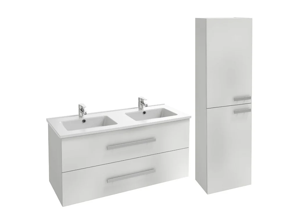 Meuble double vasque 120 cm JACOB DELAFON Ola up + colonne de salle de bain blanc