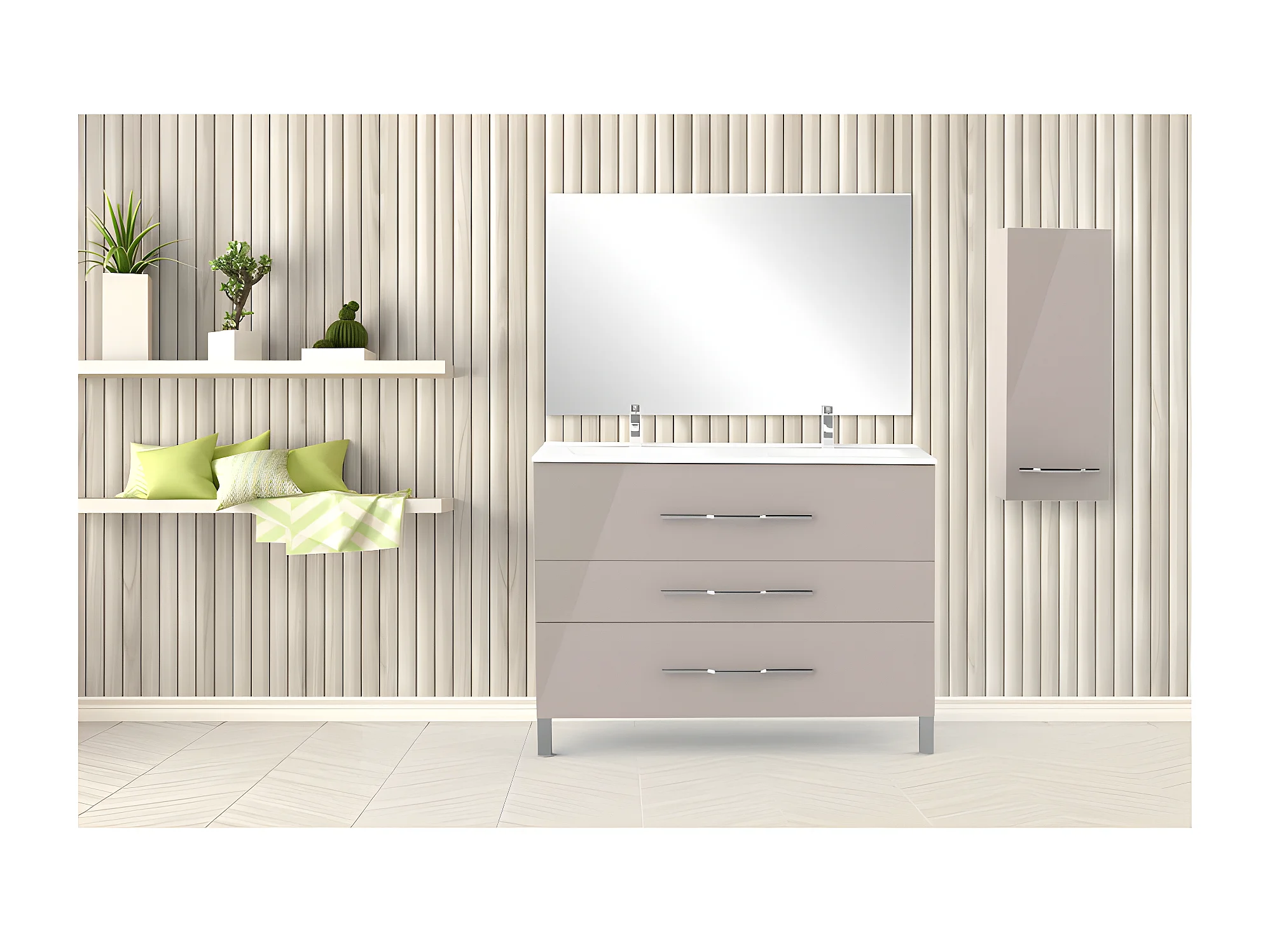 Meuble double vasque 3 tiroirs 120 cm Taupe - LANA - L 121.5 x l 47 x H 88 cm