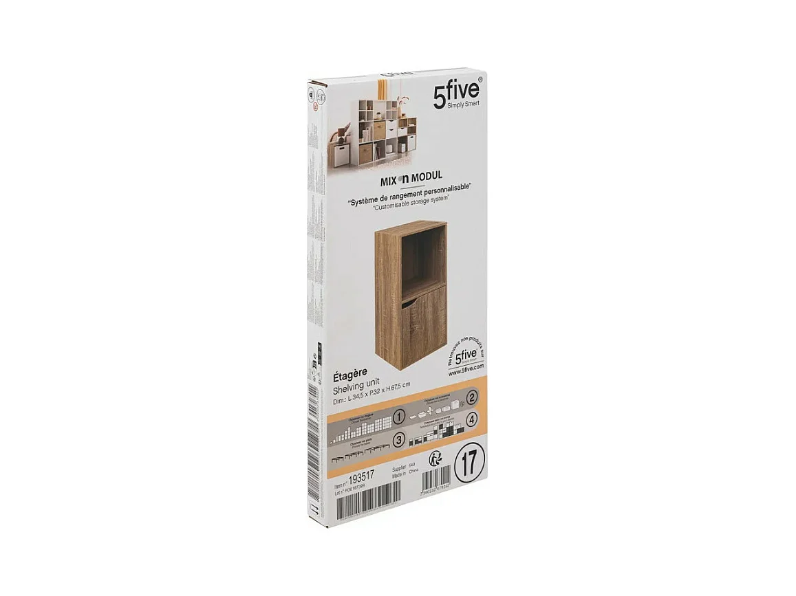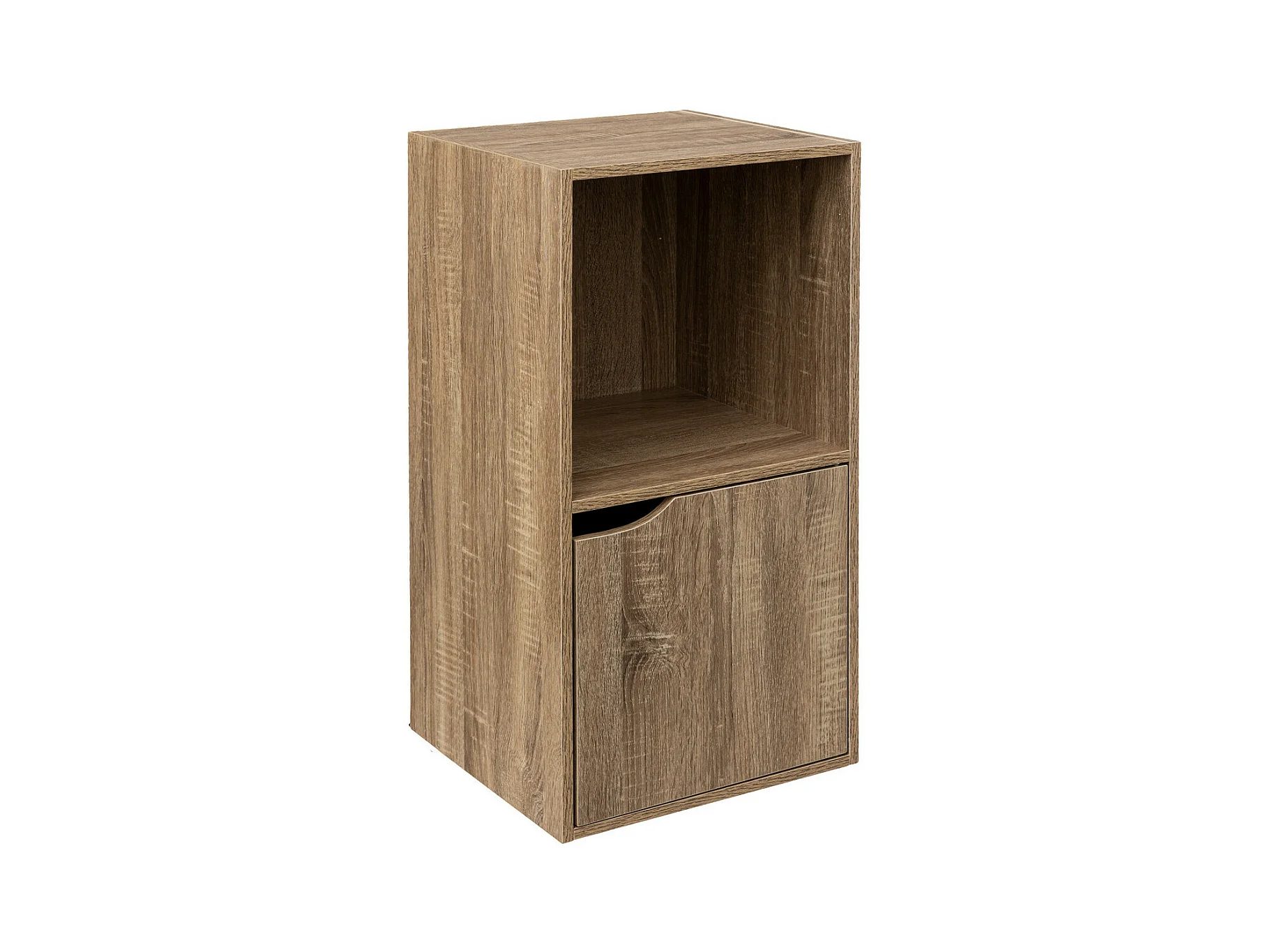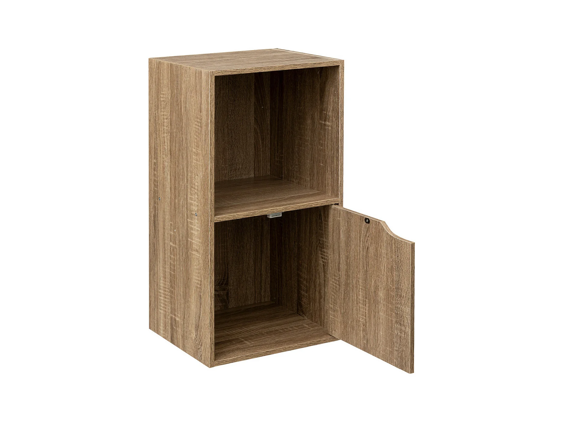 Meuble Etagère 2 Cases de rangement 1 Porte effet bois naturel H 67.6 cm
