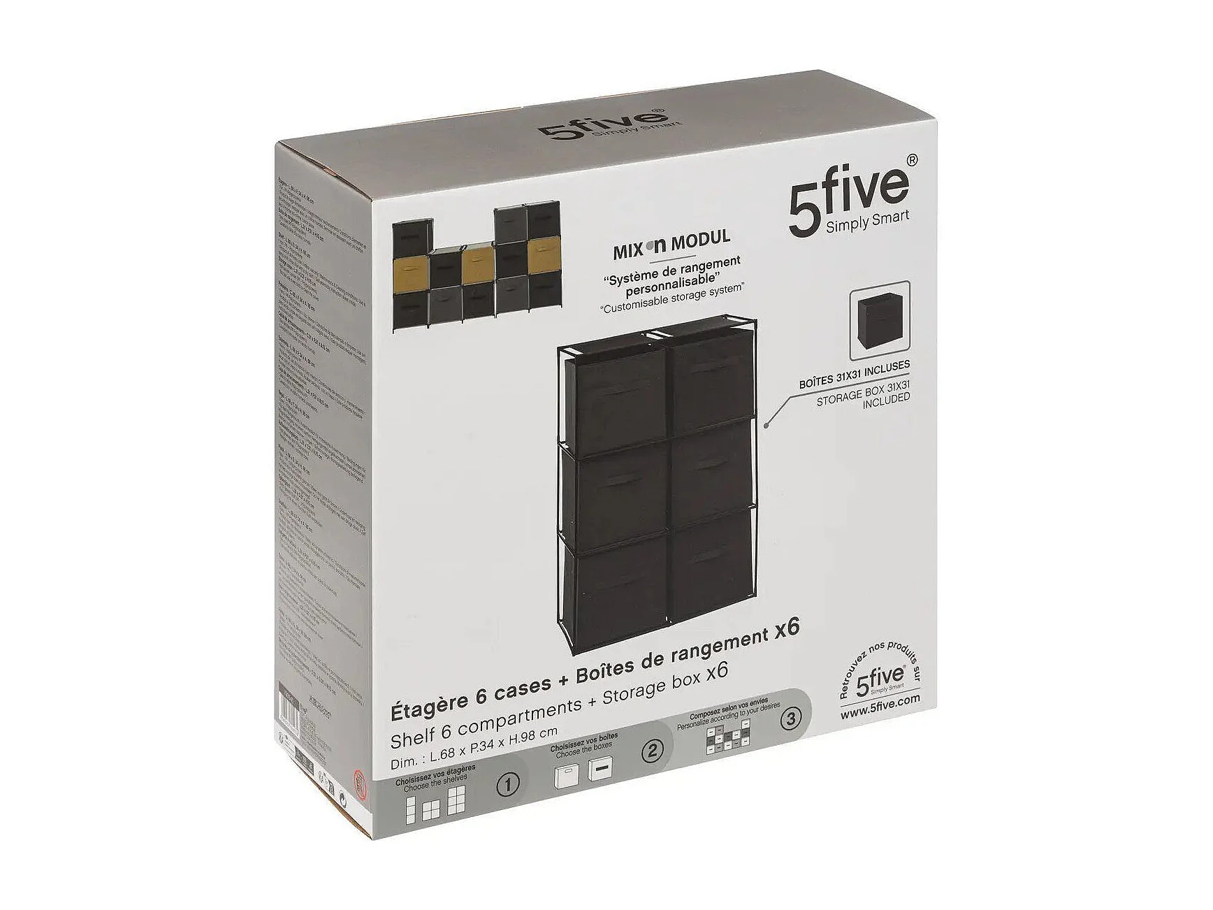 Meuble Etagère 6 cases avec 6 boîtes de rangement H 98 cm