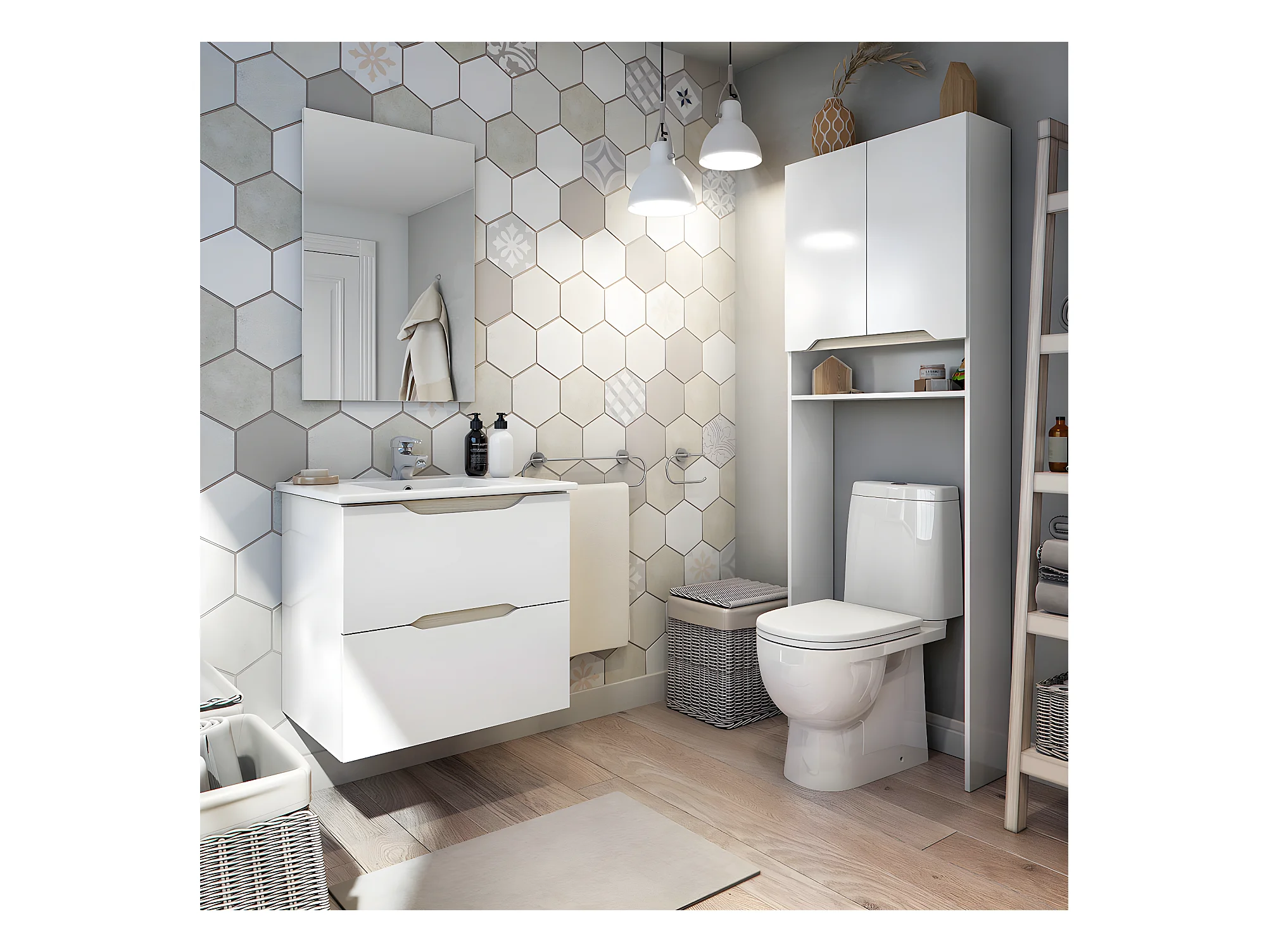 Meuble /étagère dessus WC de salle de bain 60cm avec 2 portes coloris blanc et cambrian - Longueur 60 x Profondeur 23 x Hauteur 180 cm