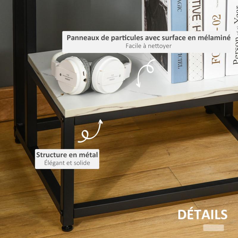 - Joli meuble design néo-rétro mélant avec élégance coloris et matériaux : châssis acier noir, plateau, étagère aspect marbre blanc