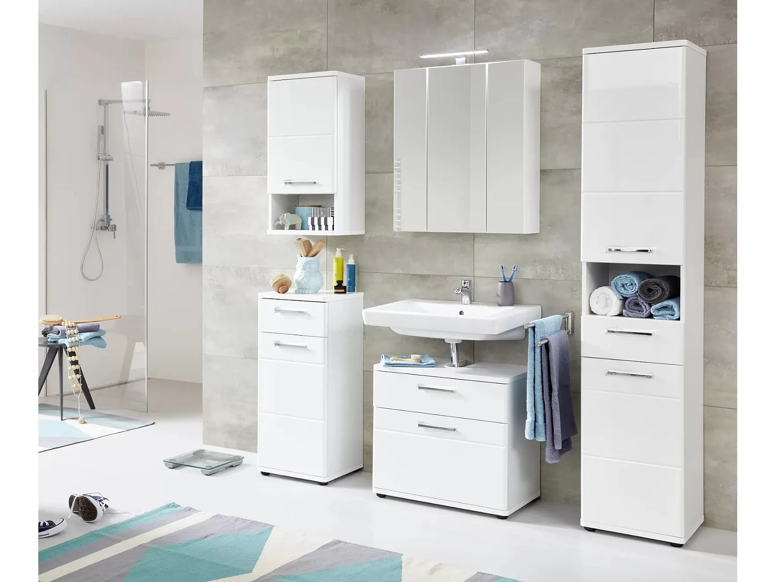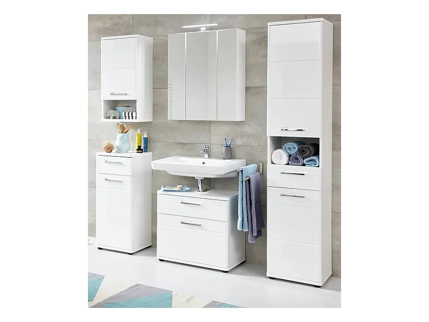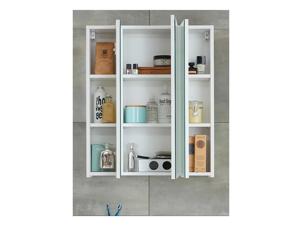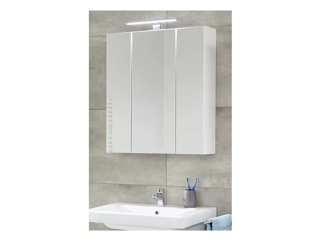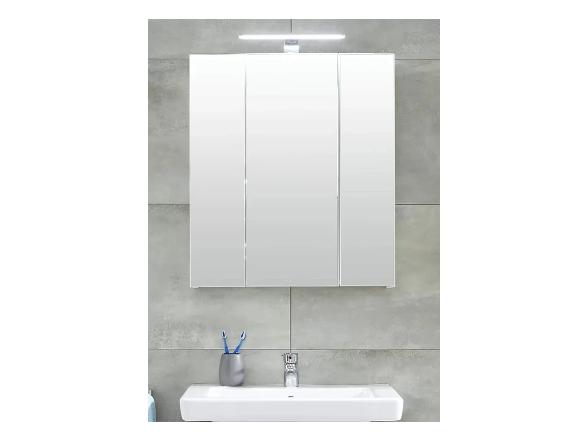 Armoire de toilette 3 portes mélaminé blanc avec miroir Micko
