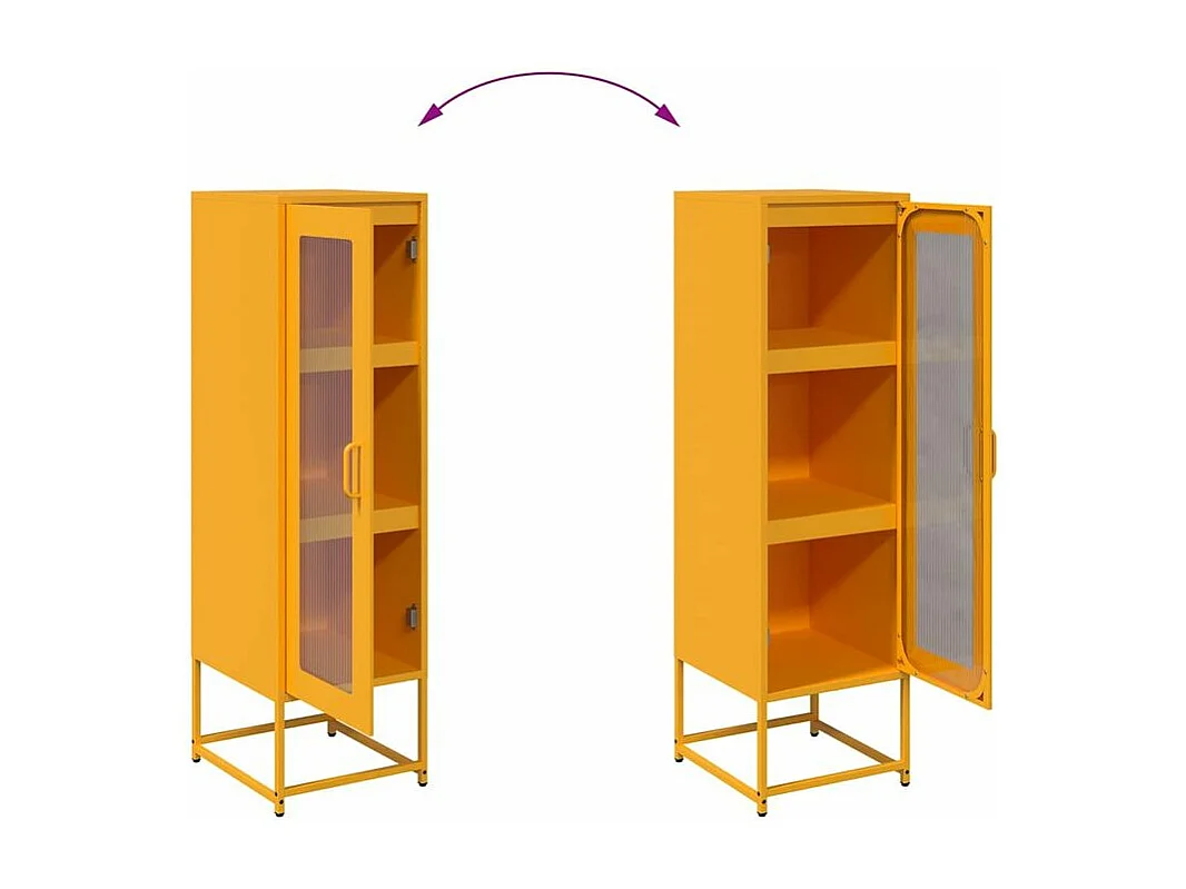 Meuble haut de rangement 1 porte 3 niveaux en métal Geko 36cm - Style Industriel-Couleur Jaune curry