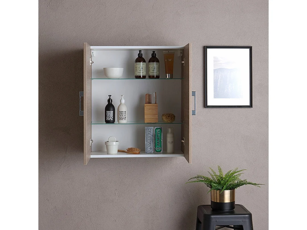 Meuble Haut De Salle De Bains 2 Portes Chêne Effet Bois Naturel | Rimini
