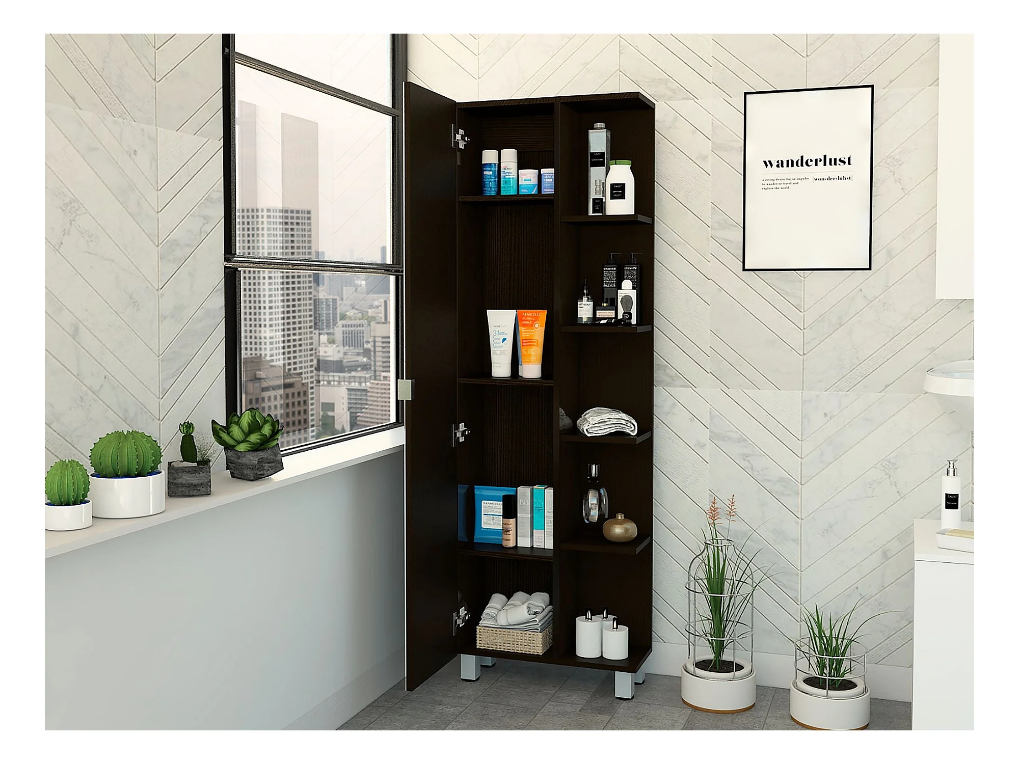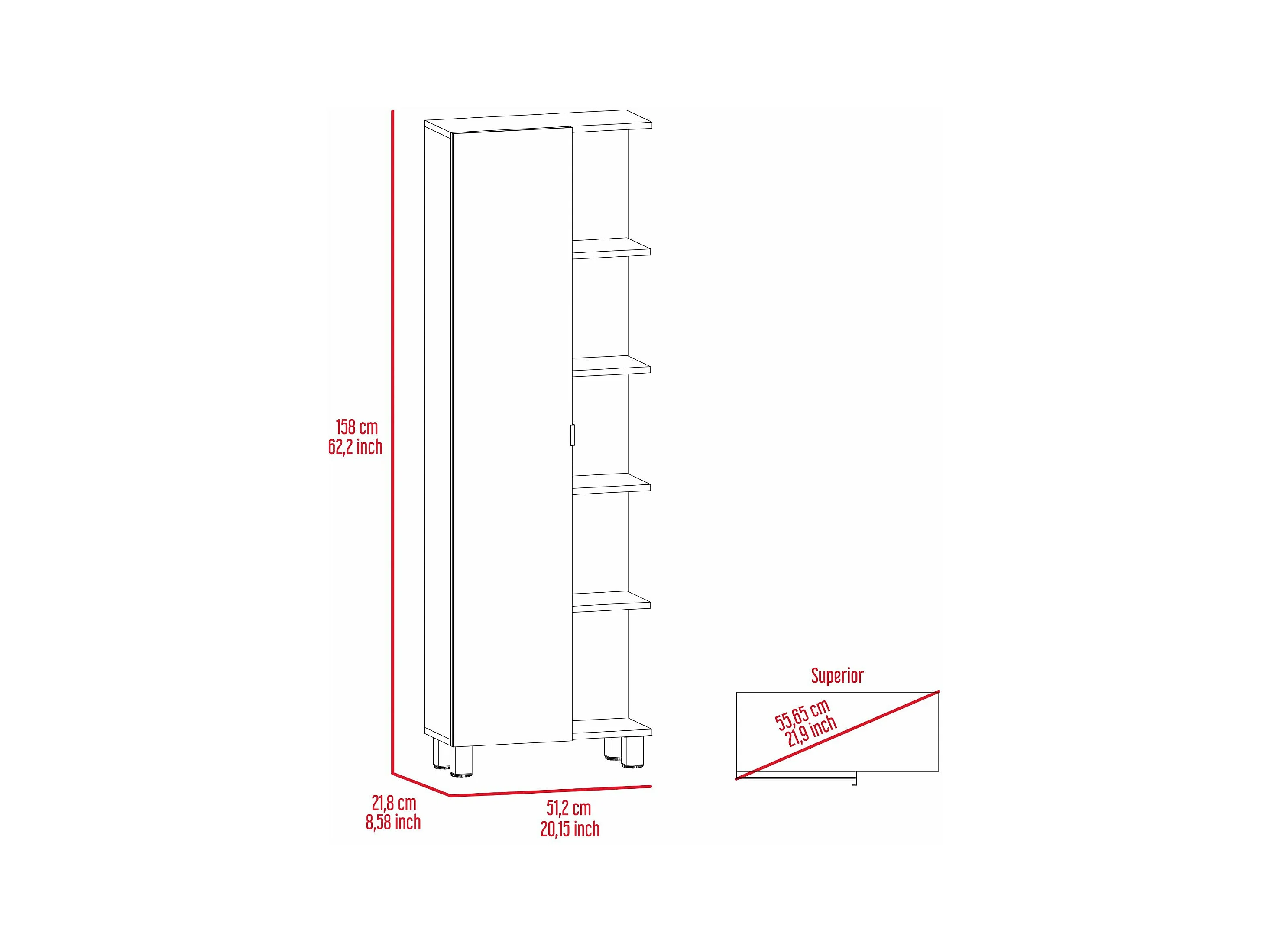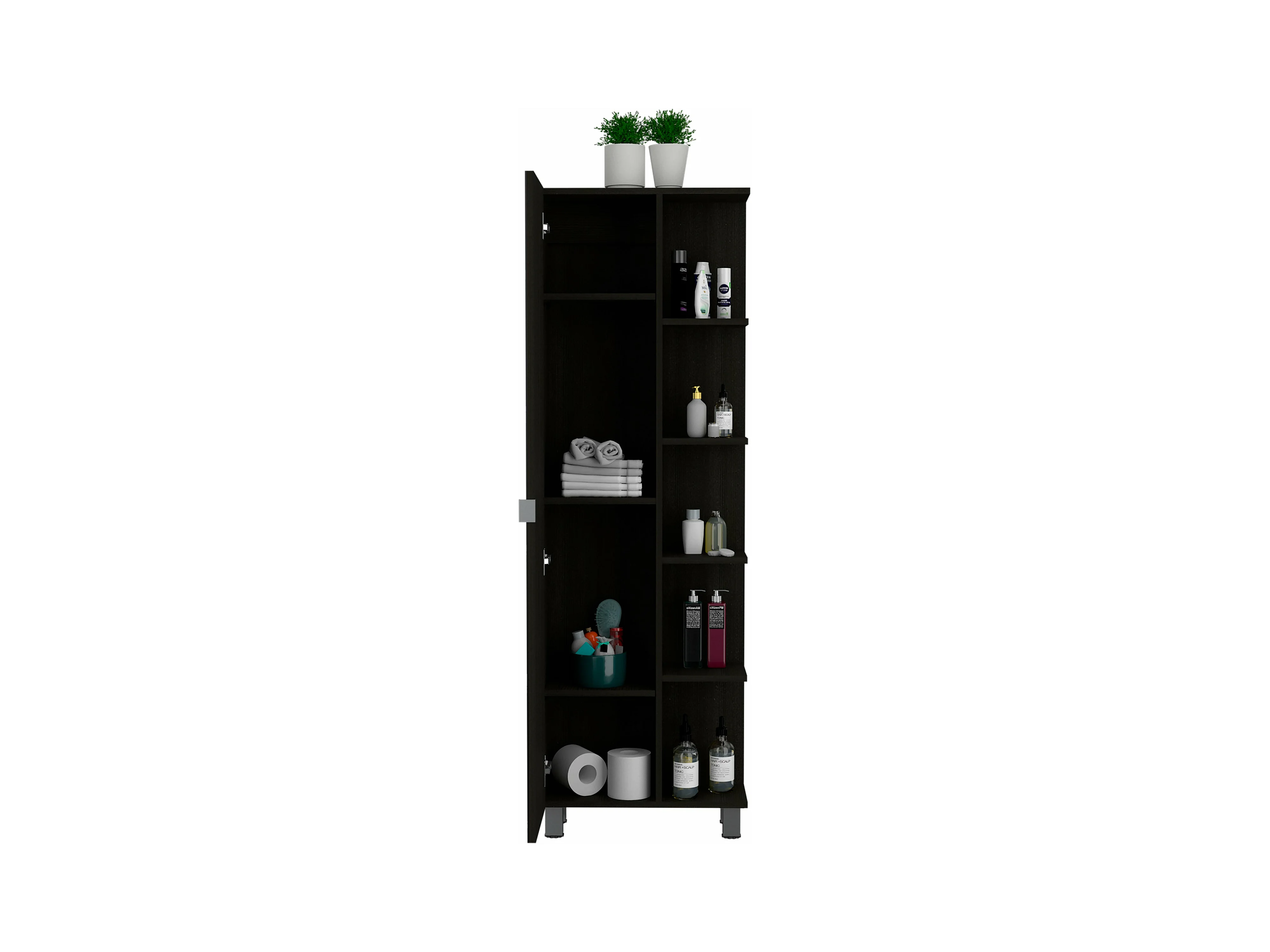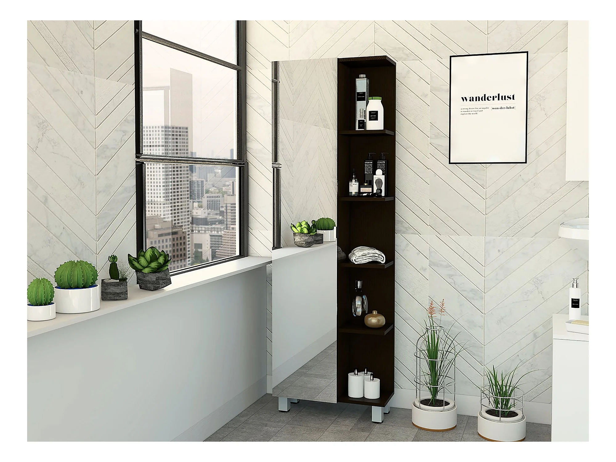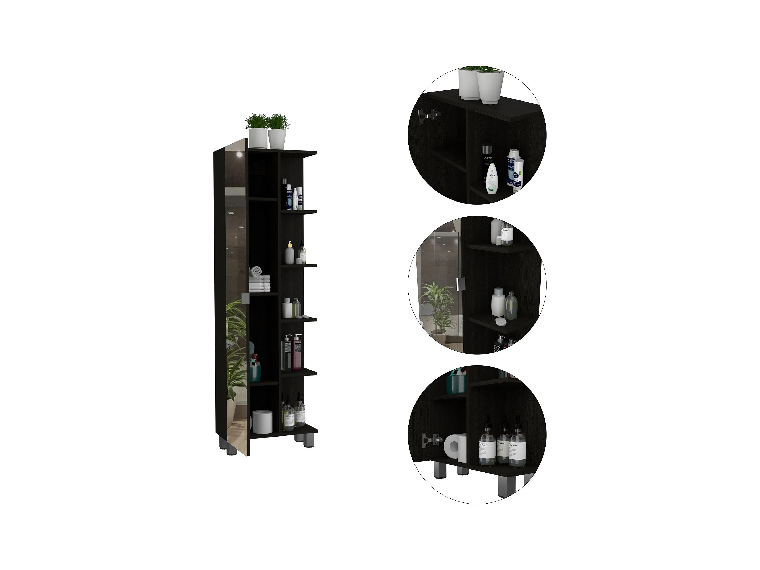 Urano Meuble de salle de bain haut avec miroir, design moderne avec plusieurs étagères , 157.98 cm X 51.18 cm X 21.79 cm , Noir