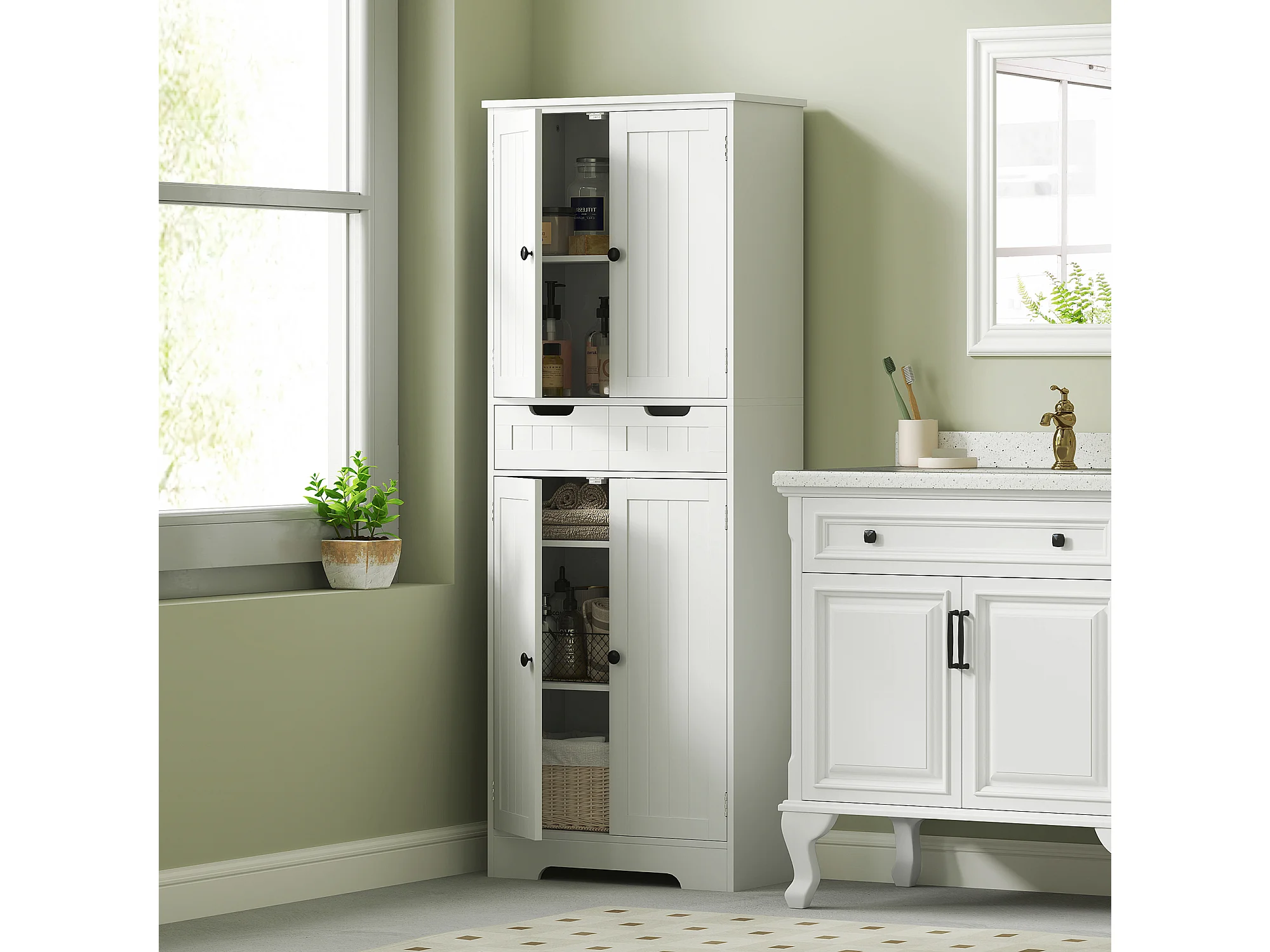 Meuble haut salle de bain 4 portes 3 étagères tiroir dim. 60 x 30 x 160 cm blanc