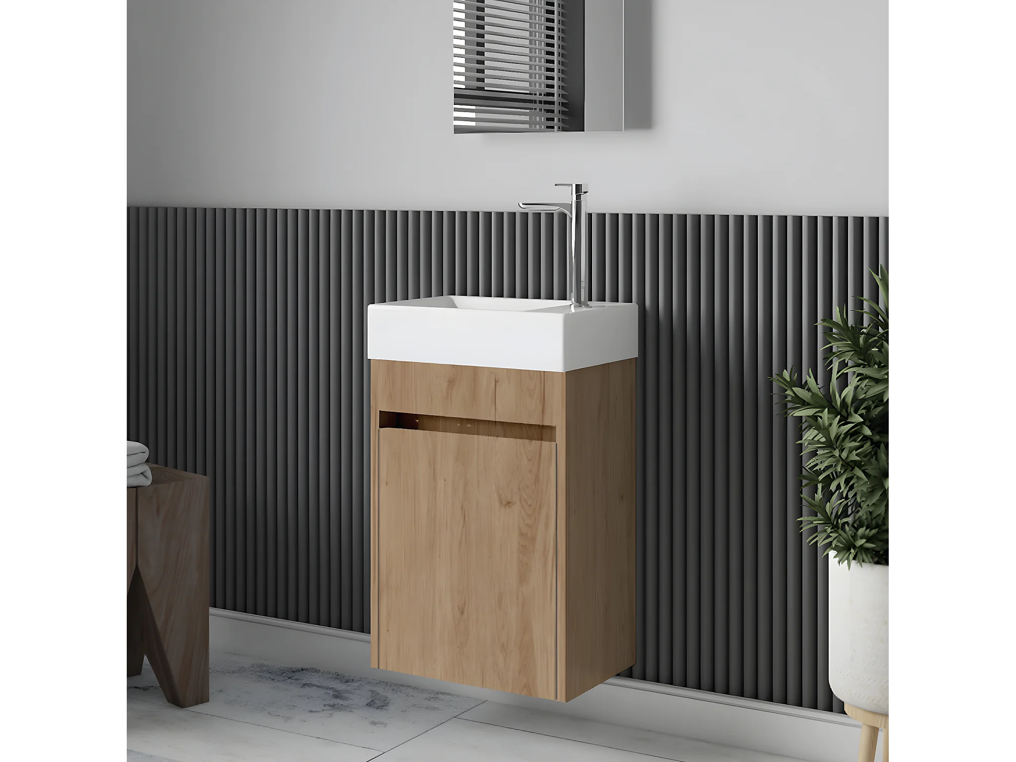 Meuble lave-main salle de bain design MESSINA largeur 45 cm chêne clair