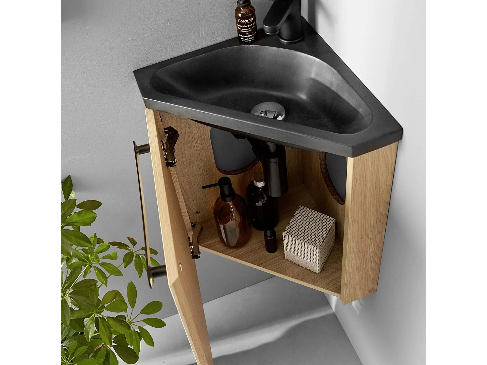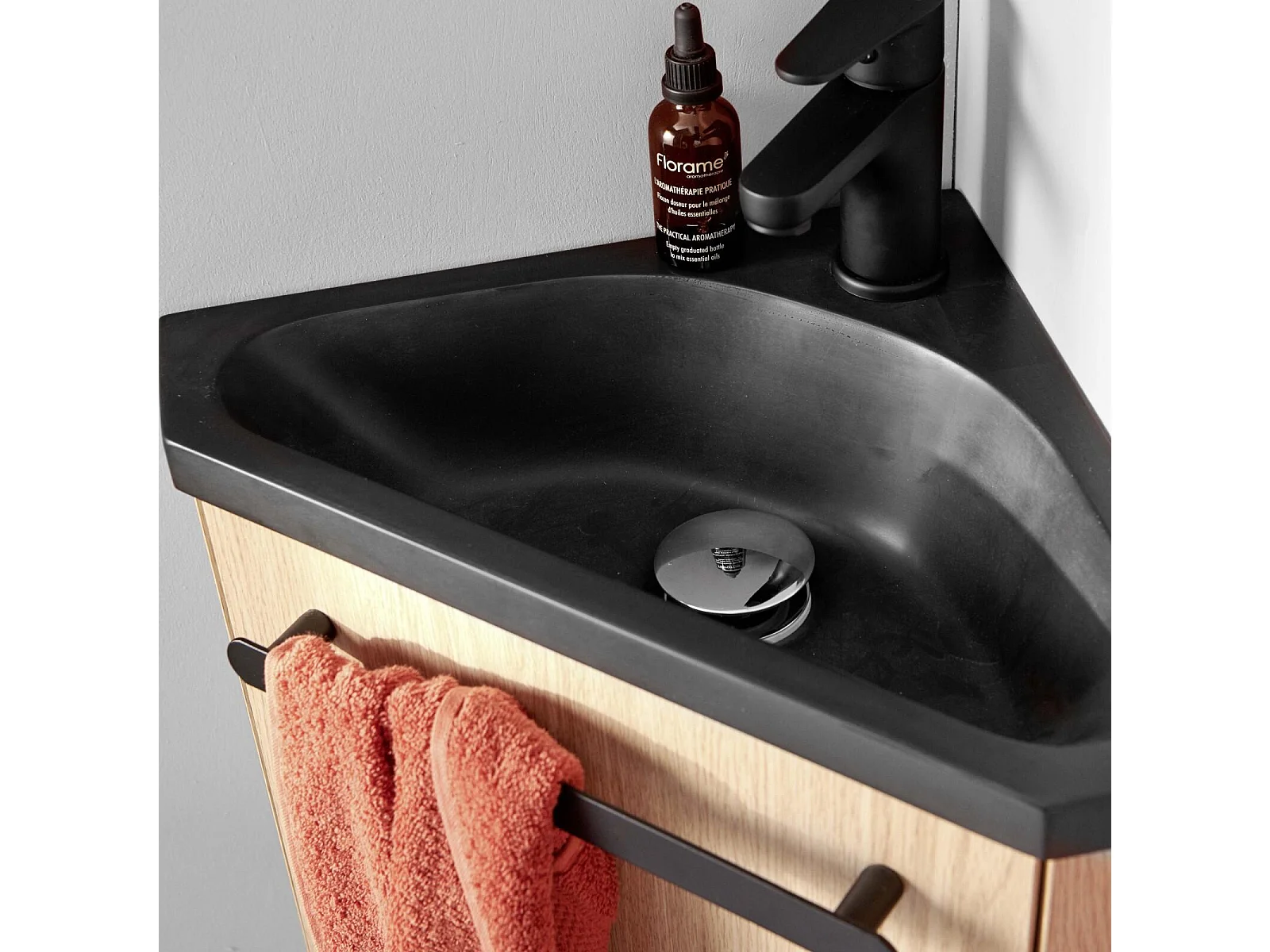 Meuble lave-mains d'angle suspendu avec vasque résine