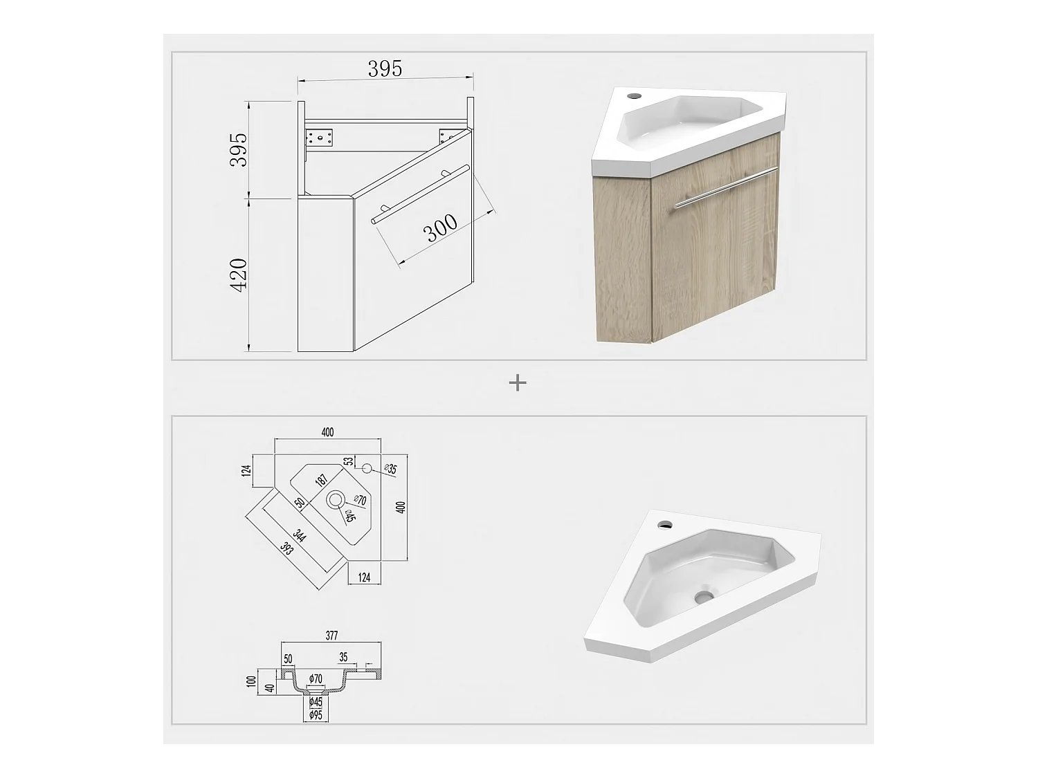 Meuble lave-mains d'angle avec vasque en résine SORRENTO