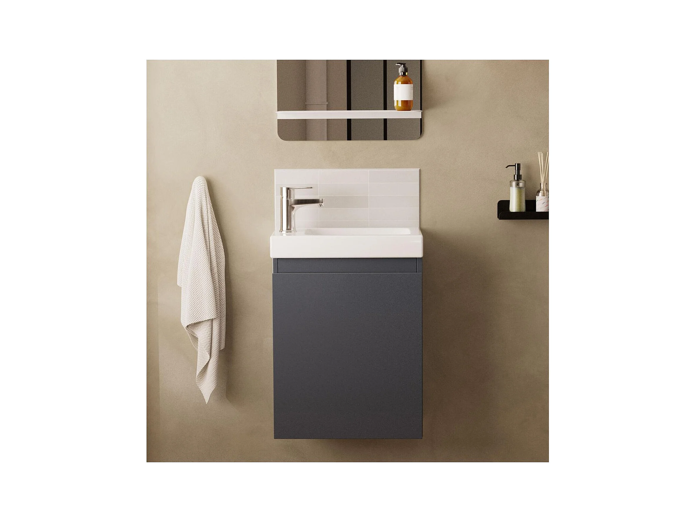 Meuble lave-mains suspendu avec vasque en résine noir - avec rangement latéral