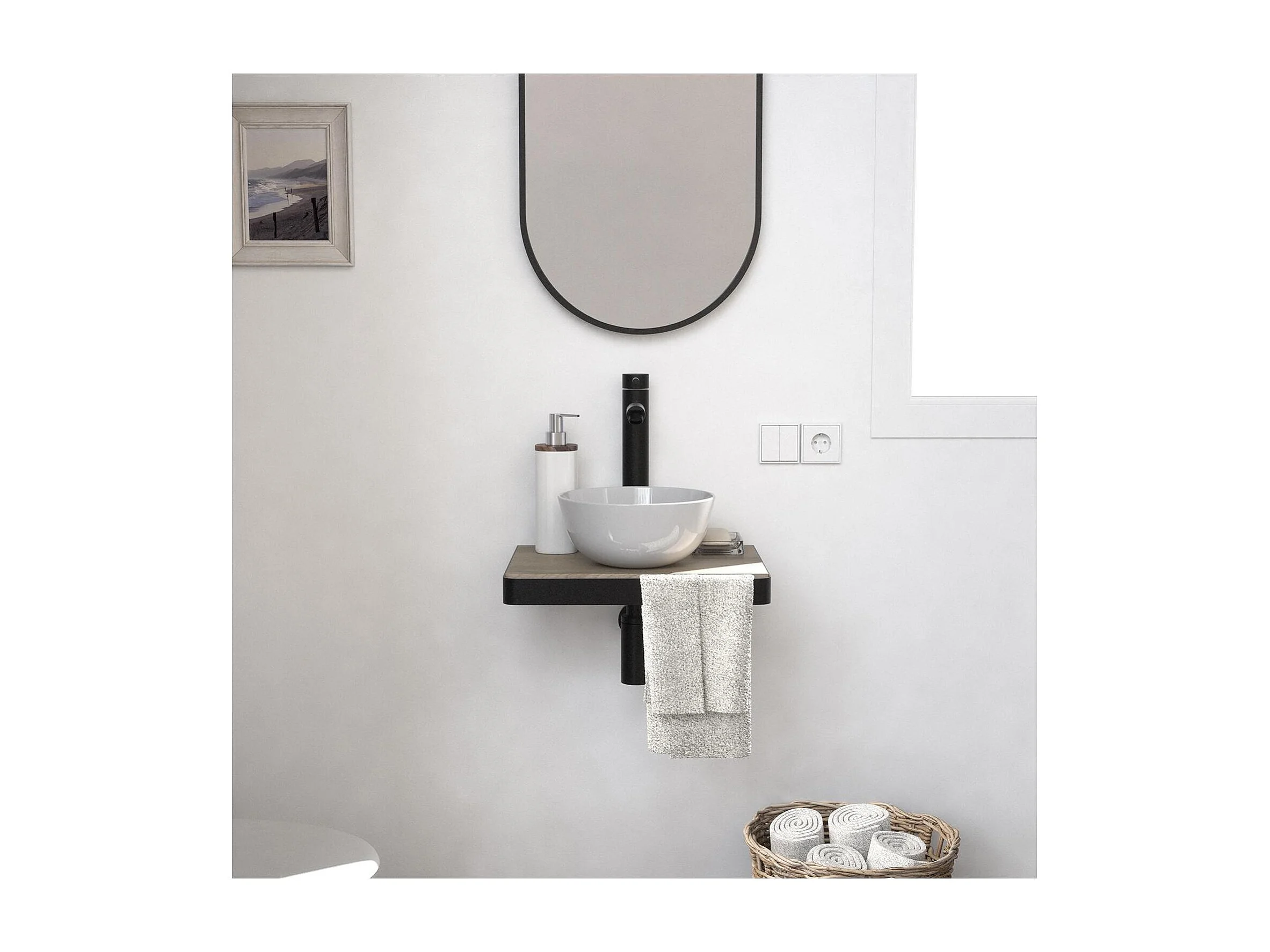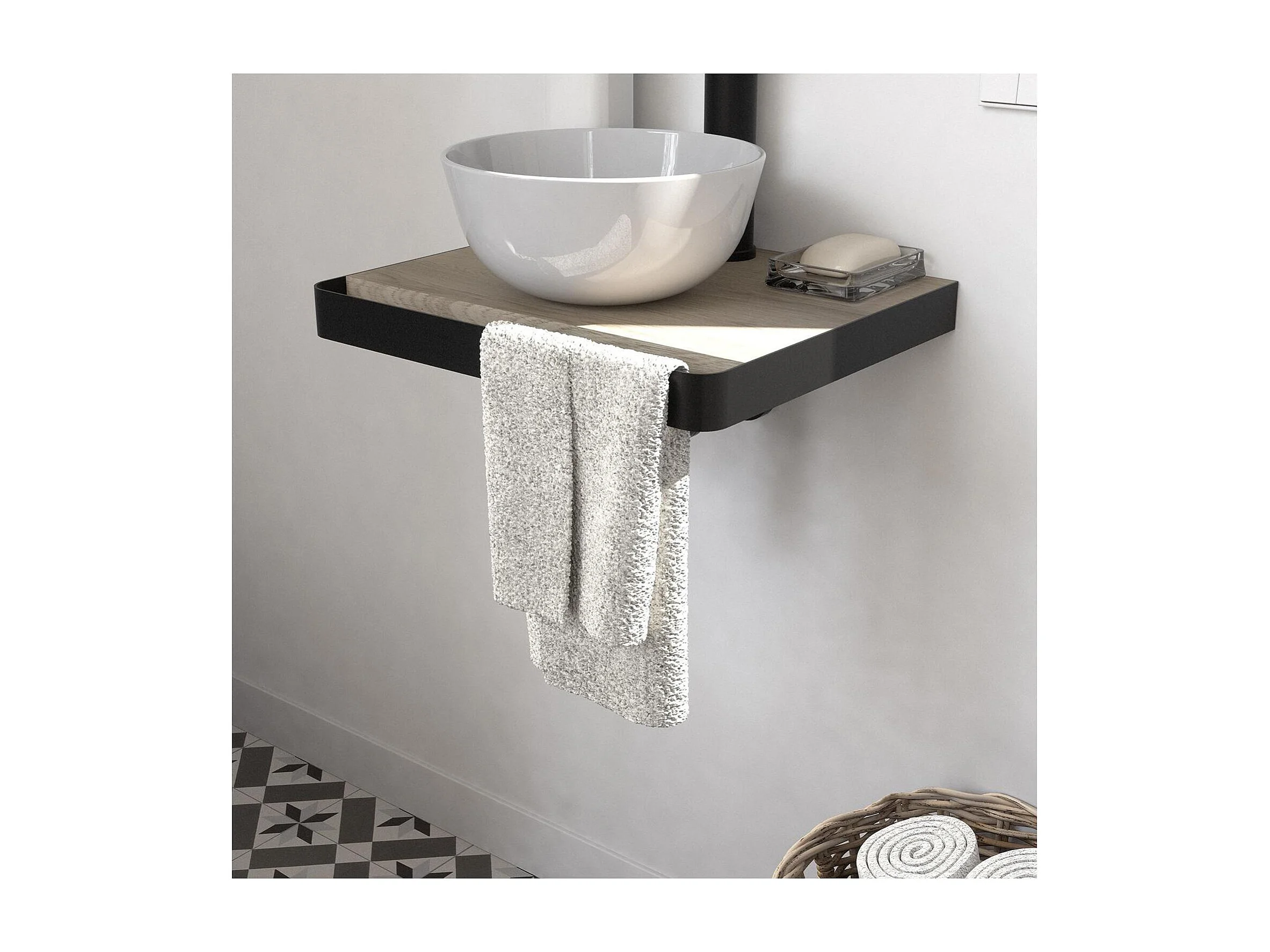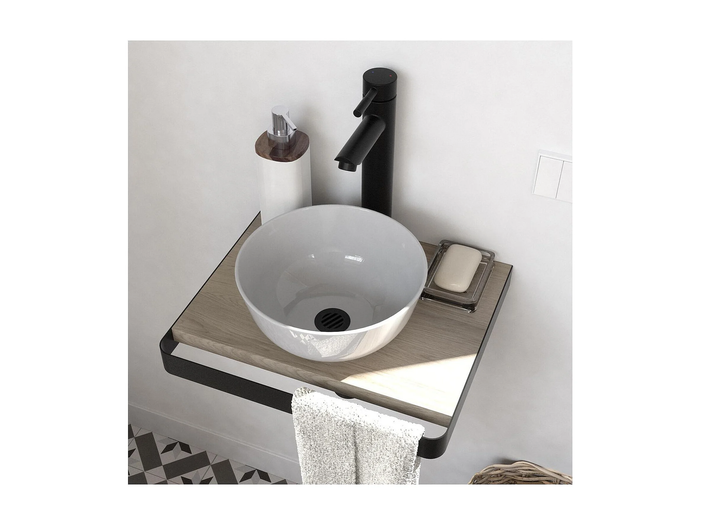 Meuble lave-mains SOHO plan fin p-serviette face vasque blanche+rob+miroir