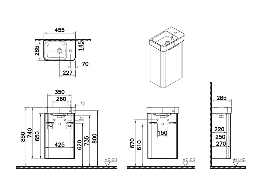 Meuble lave mains VITRA Sento Round terracotta avec plan vasque céramique 45 cm