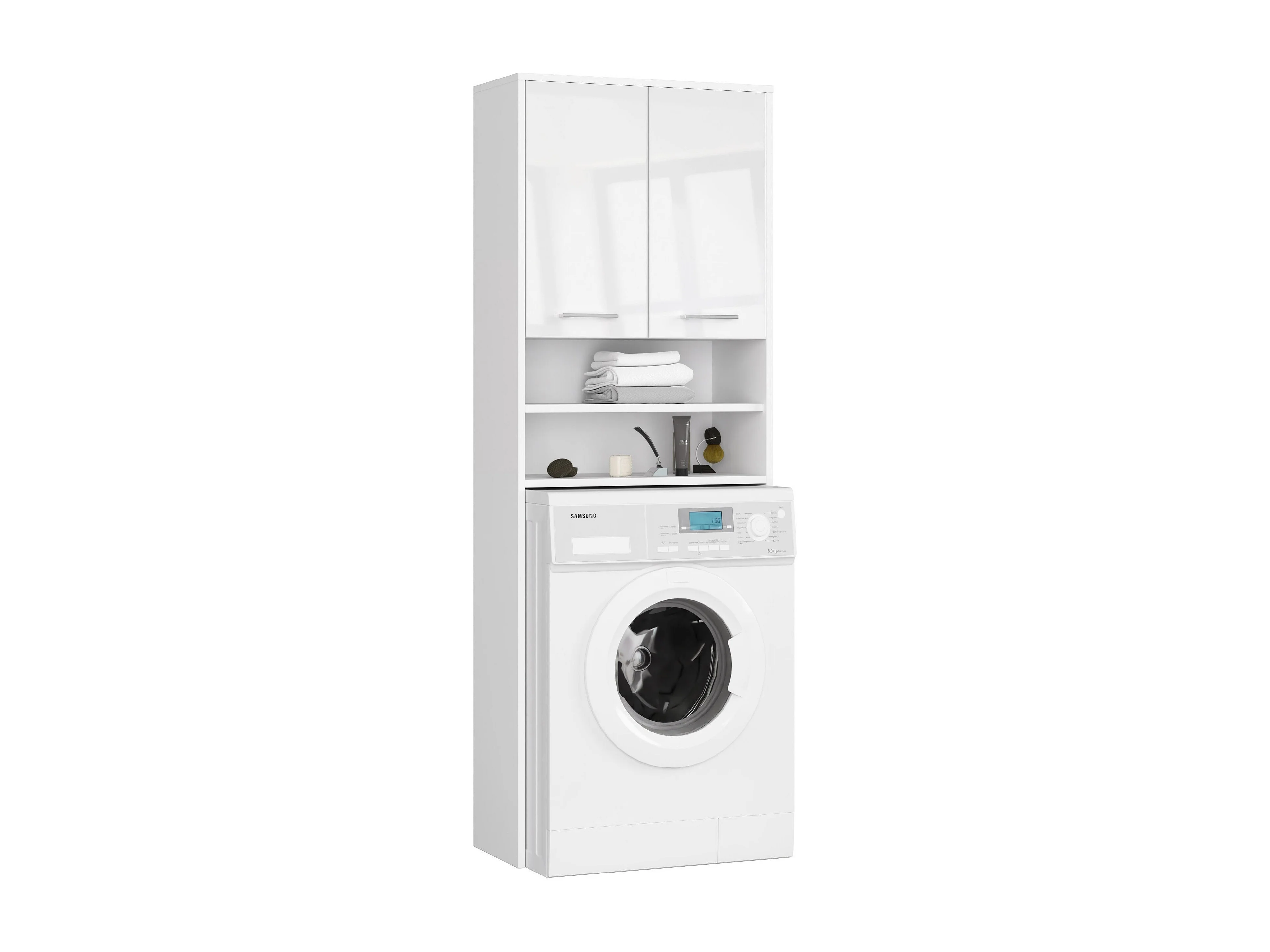 meuble machine a laver 2 portes façade blanc brillant 4 étagères 64x30x180 cm