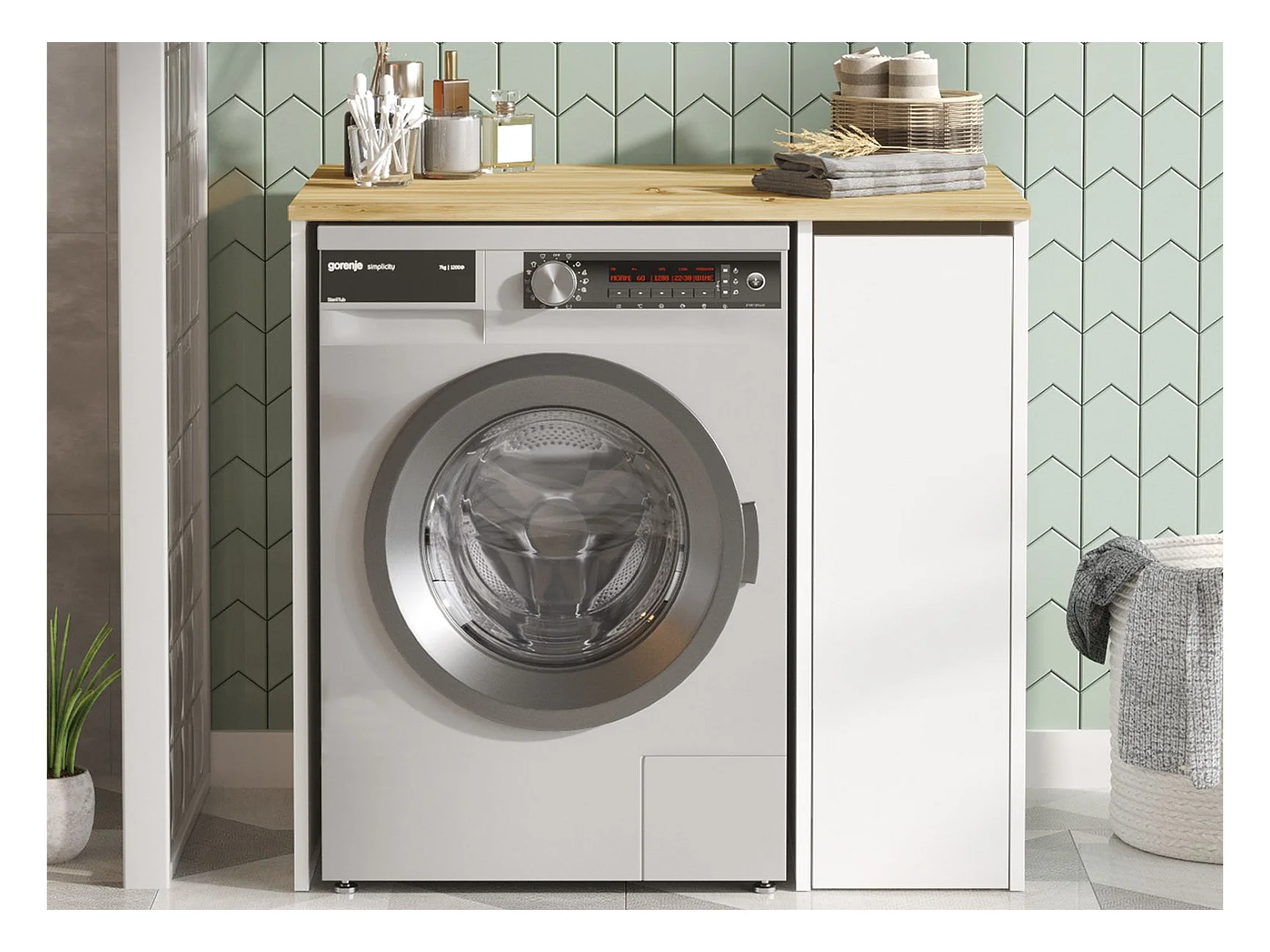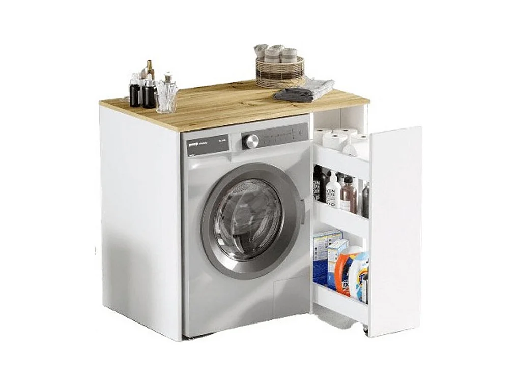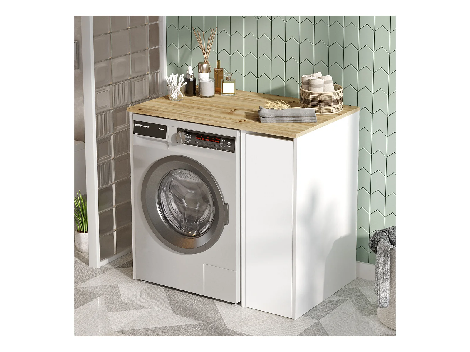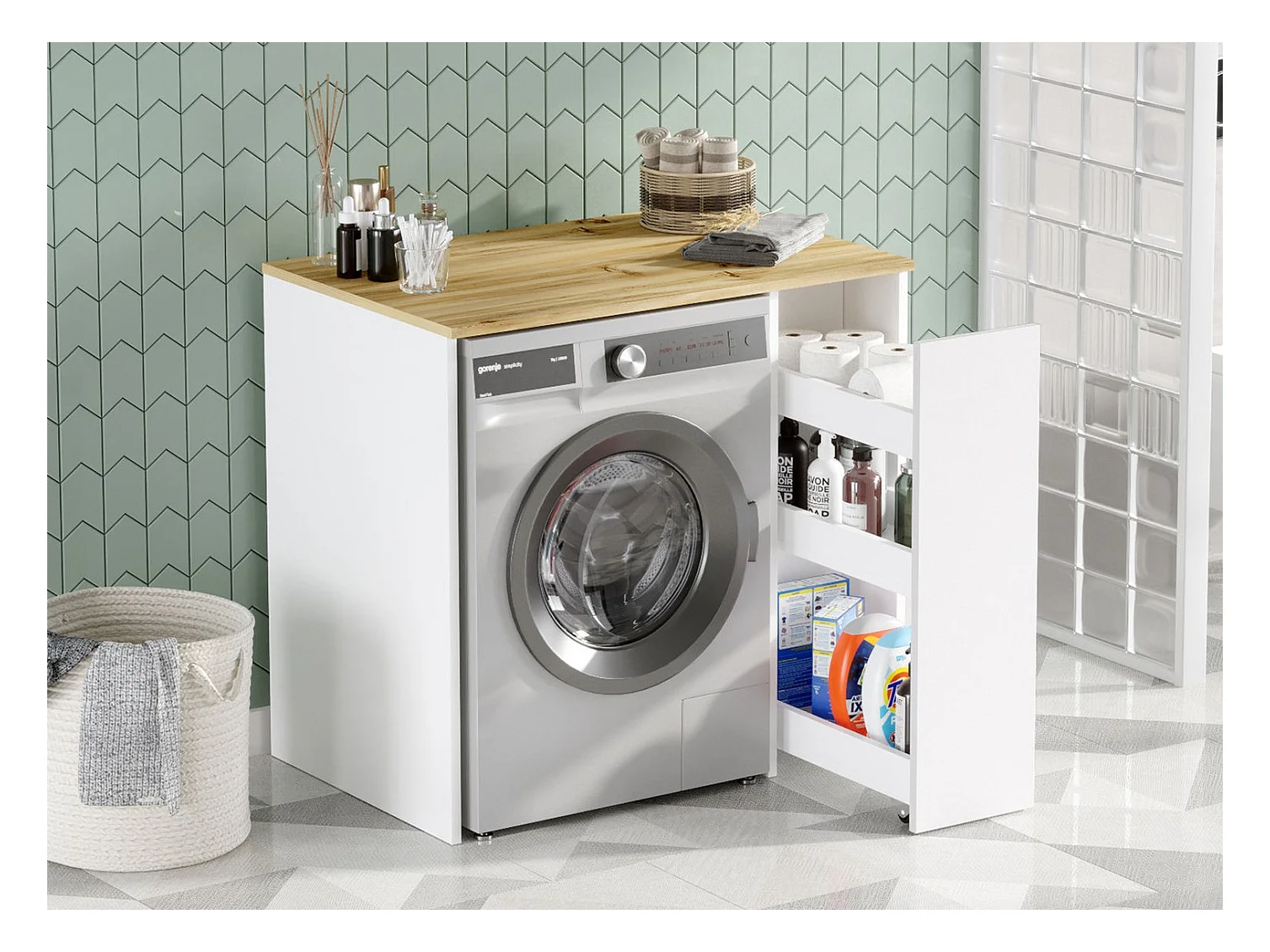 Armoire de Rangement pour Machine à Laver en Bois Blanc et Bois Naturel