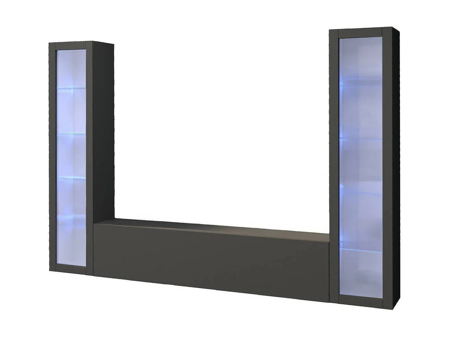 Élément mural Dduc, meuble TV 3 portes, meuble de salon polyvalent avec vitrine et lumière LED, 100% Made in Italy, 260x30h180 cm, Anthracite