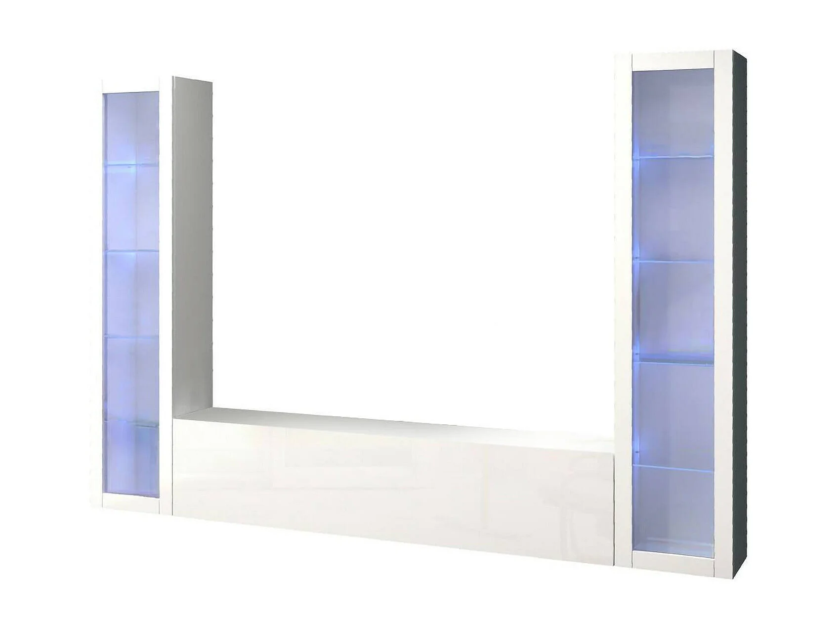 Élément mural Dduc, meuble TV 3 portes, Meuble de salon polyvalent avec vitrine et lumière LED, 100% Made in Italy, 260x30h180 cm, Blanc brillant