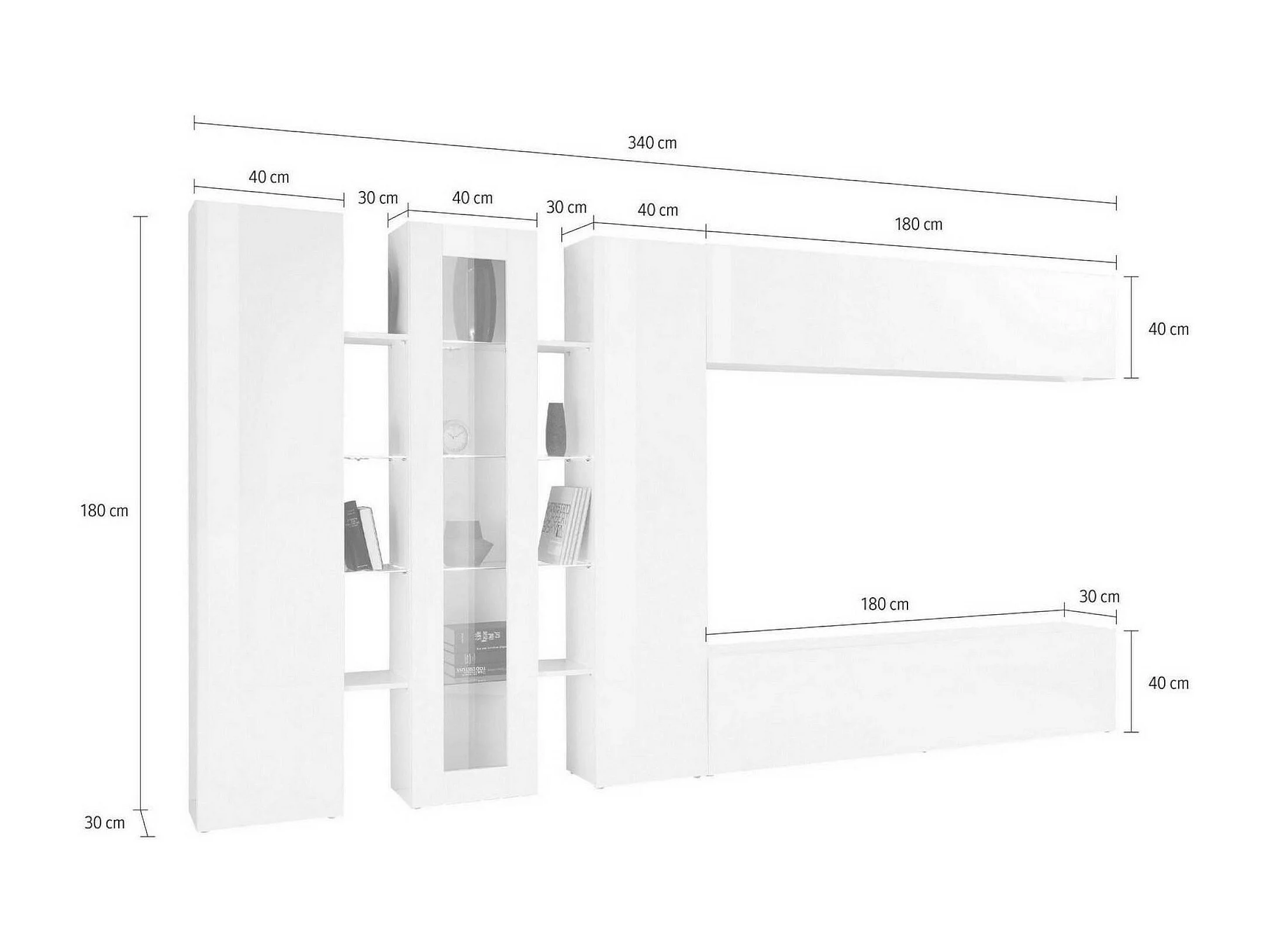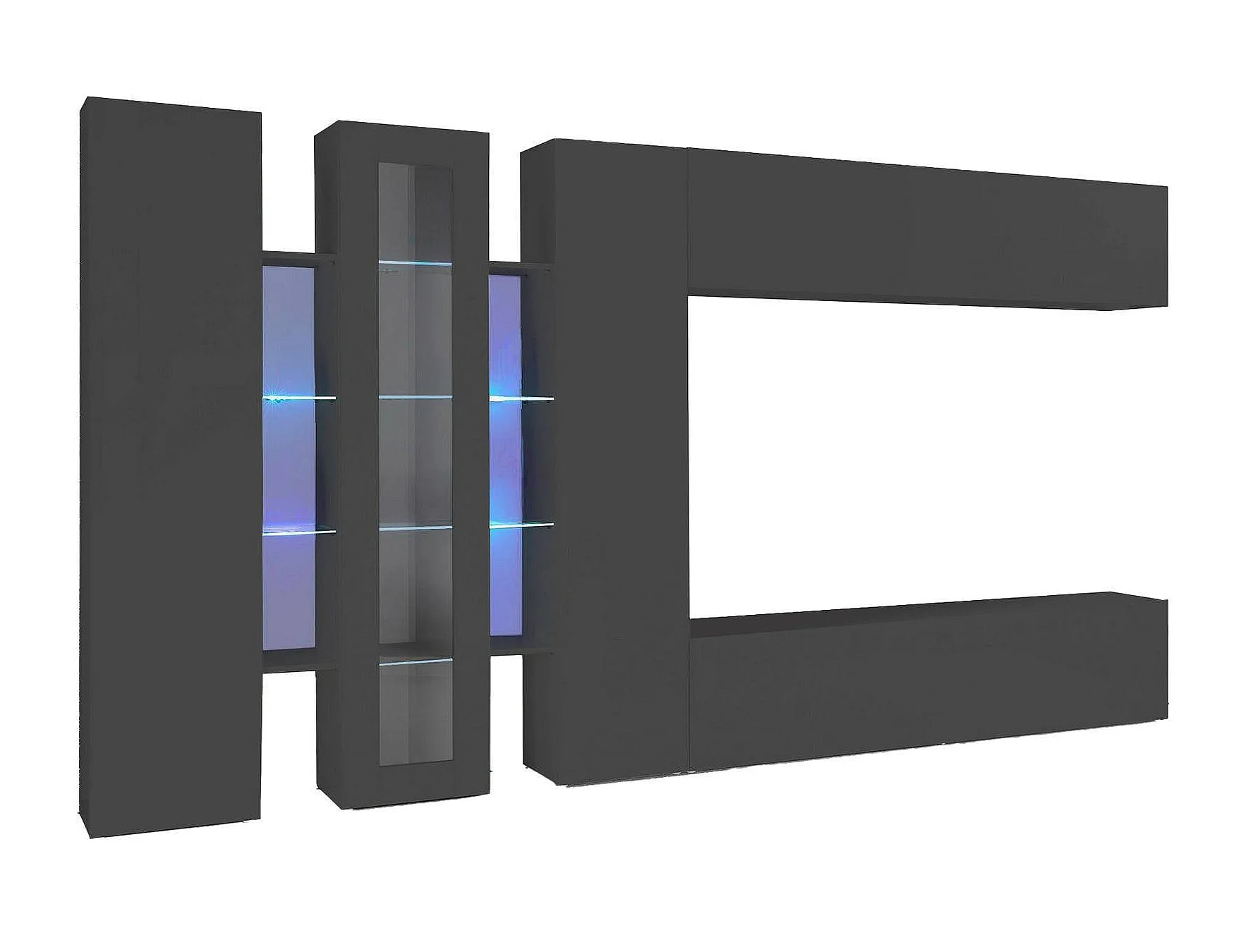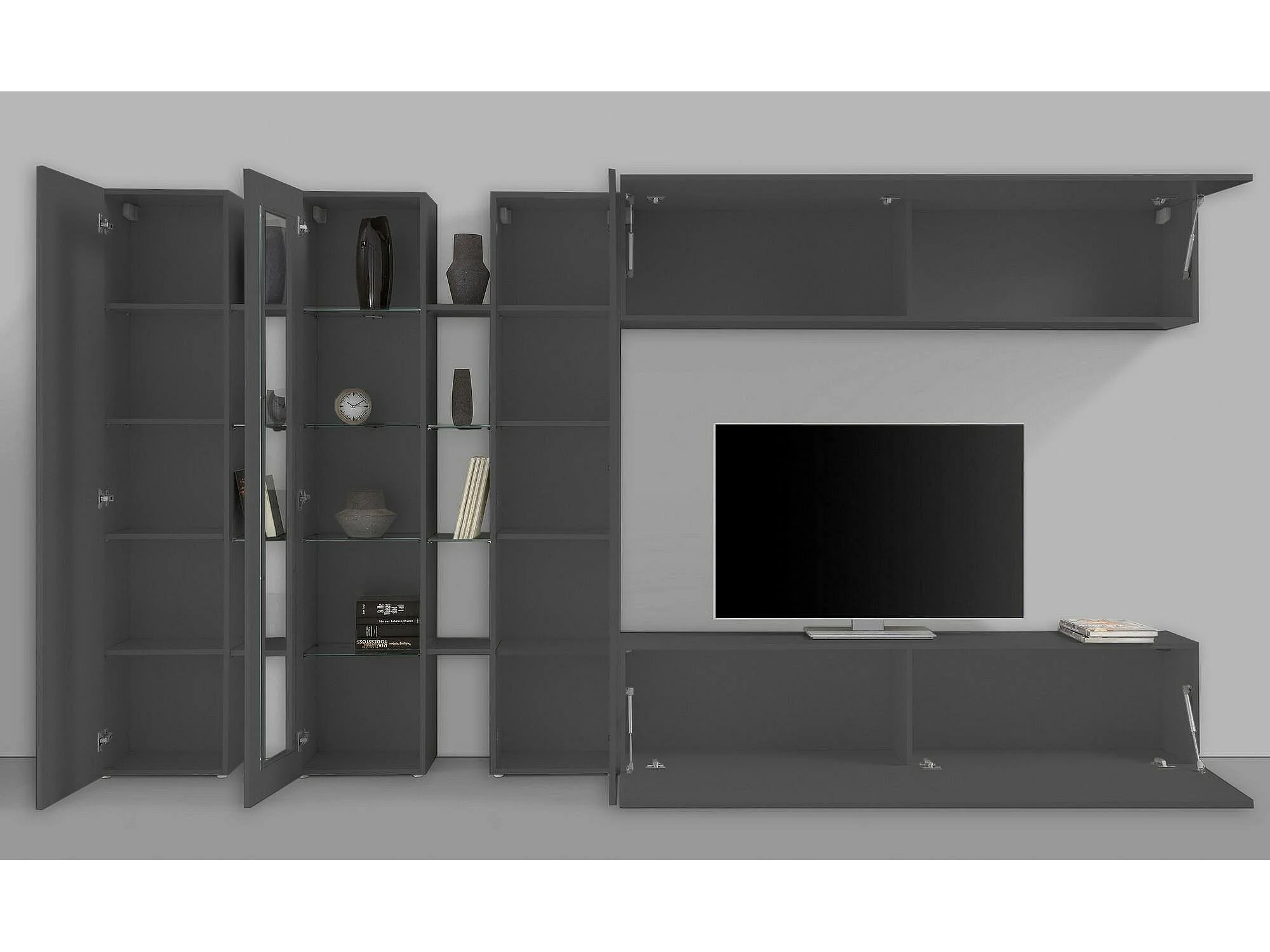 Système mural Dfilard, meuble TV pour salon, meuble de salon avec vitrine et lumière LED, 100% Made in Italy, 320x30h180 cm, Anthracite