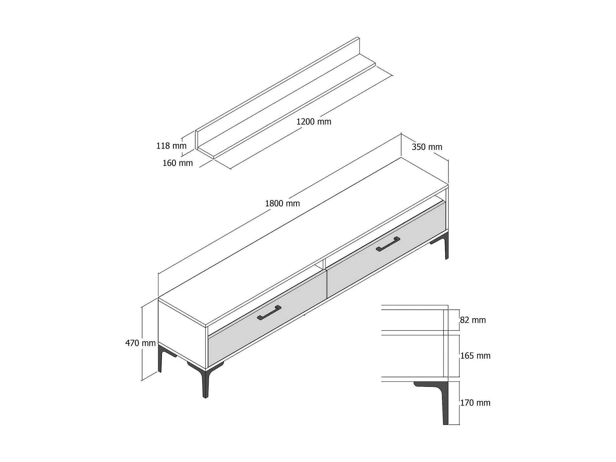 Meuble Mural Edasich, Composition du salon, Meubles de salon polyvalents, Meuble télé, 180x35h47 cm, Noyer et Anthracite