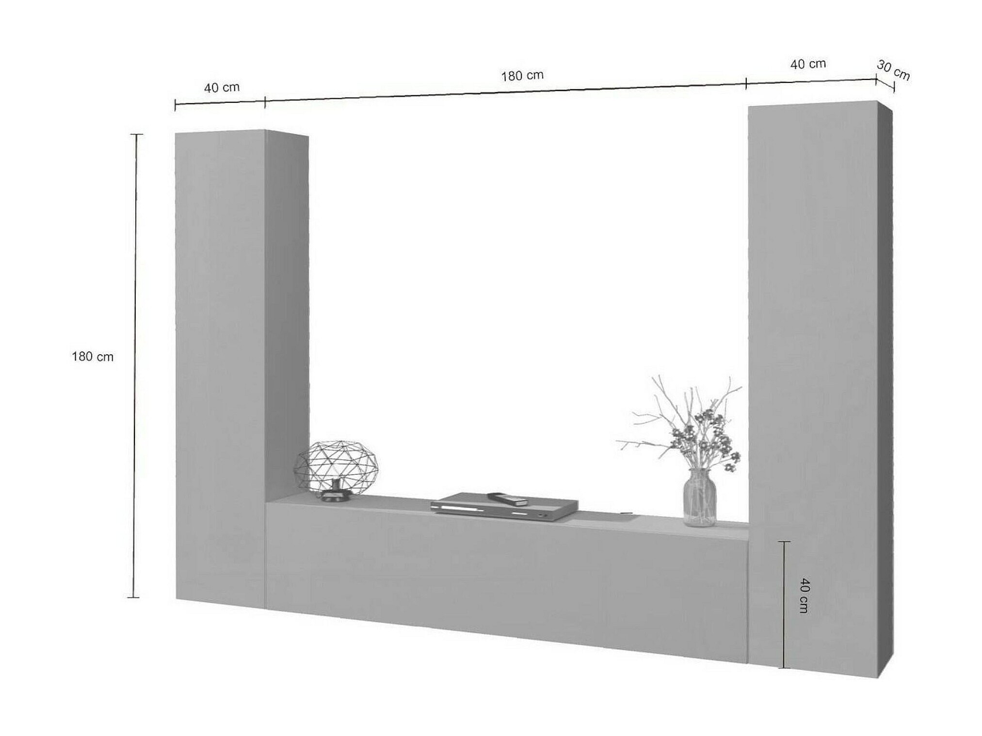 DIMENSIONS EN CM - Meuble TV : 180x30h40 - Armoire colonne : 40x30h180