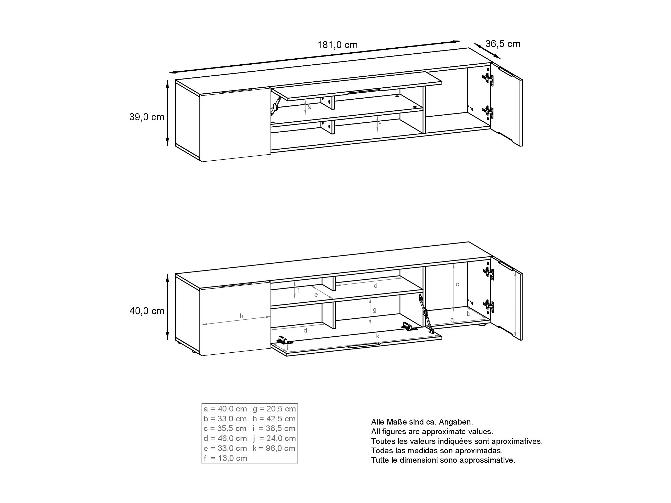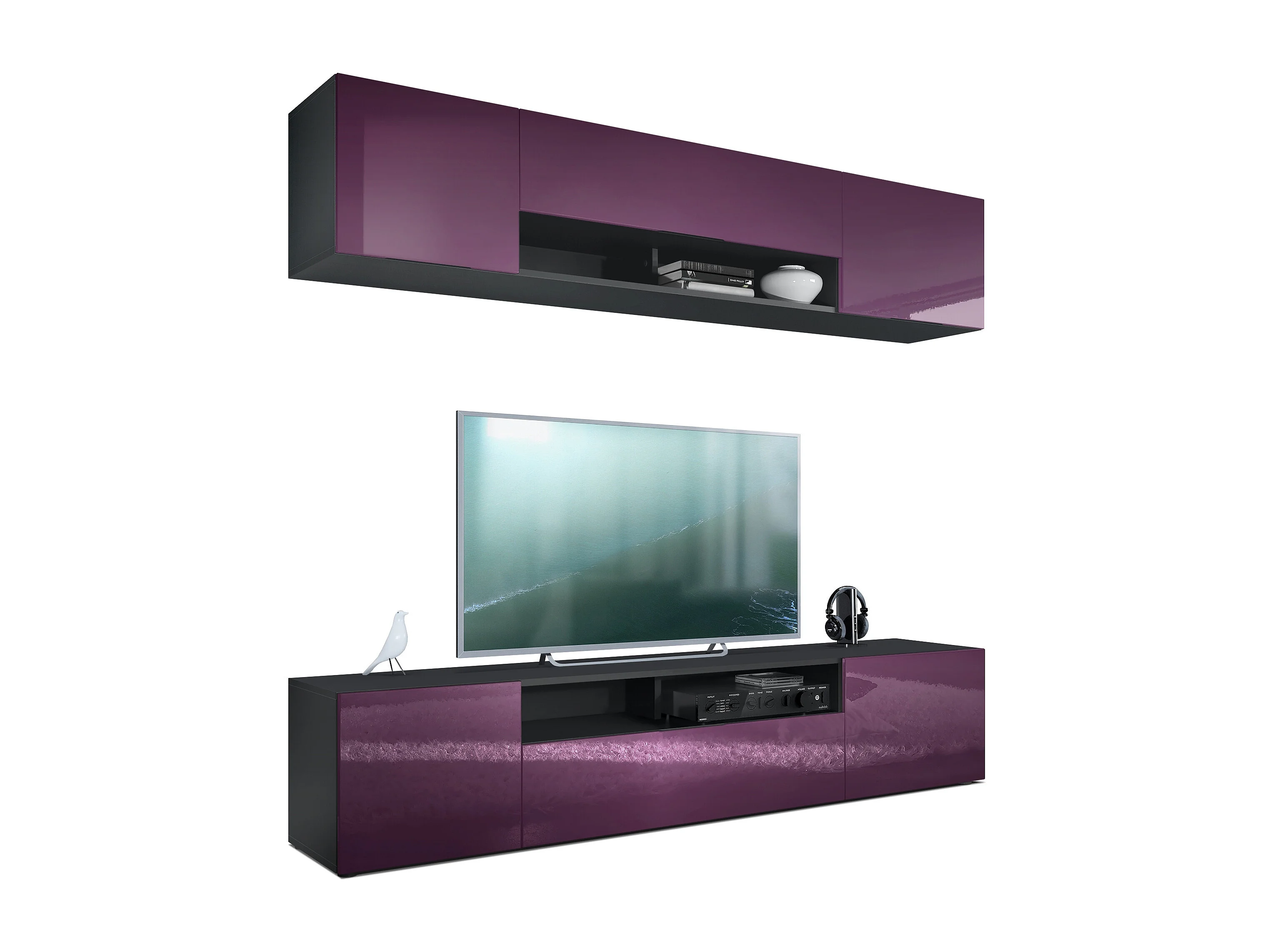 Meuble-paroi Mogan, noir mat/mûre haute brillance - Meuble mural moderne composé de 2 étagères TV (181 x 147 x 35 cm)