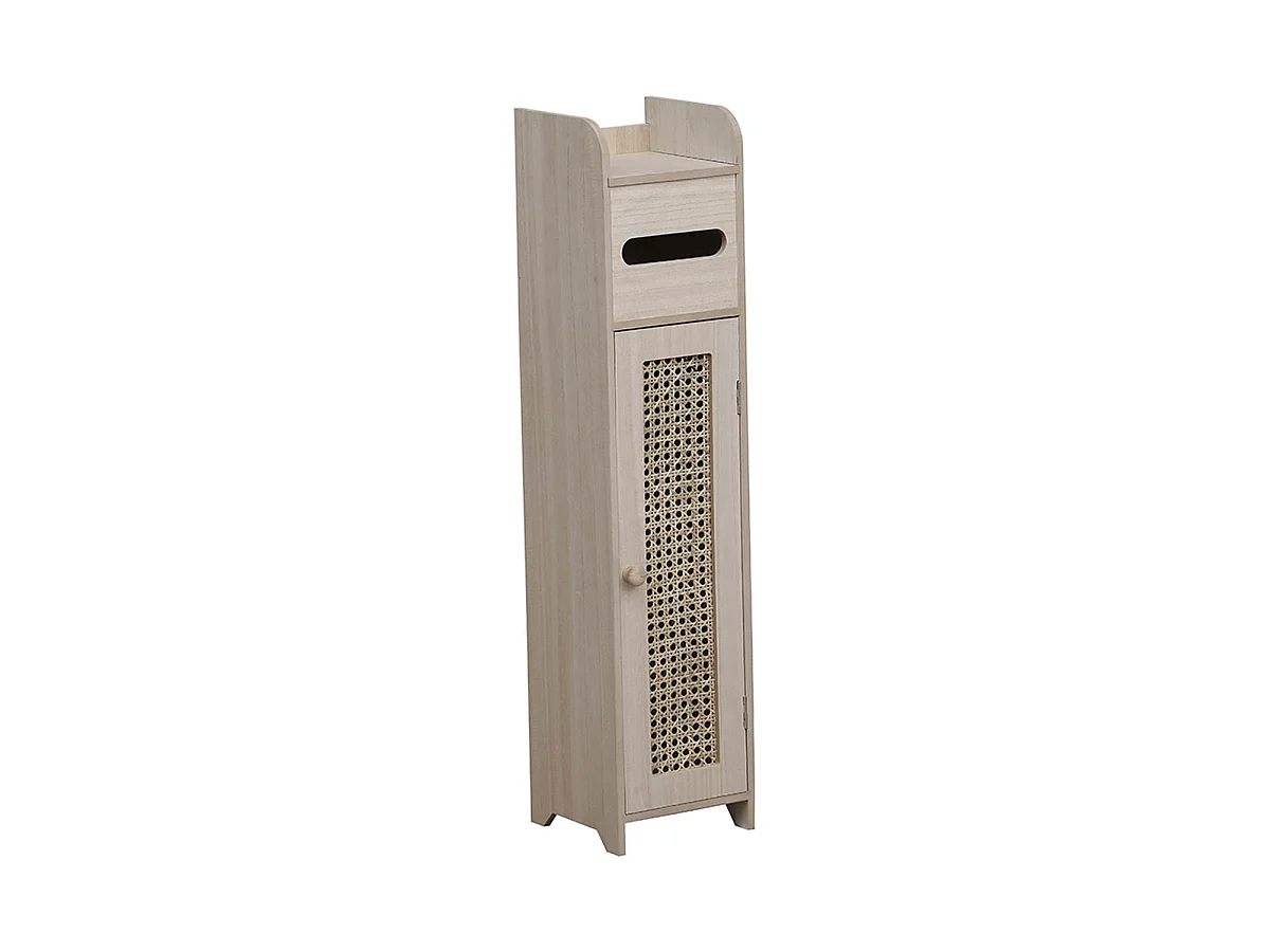 Meuble Réserve et Dérouleur de Papier WC en Bois et Cannage en Rotin