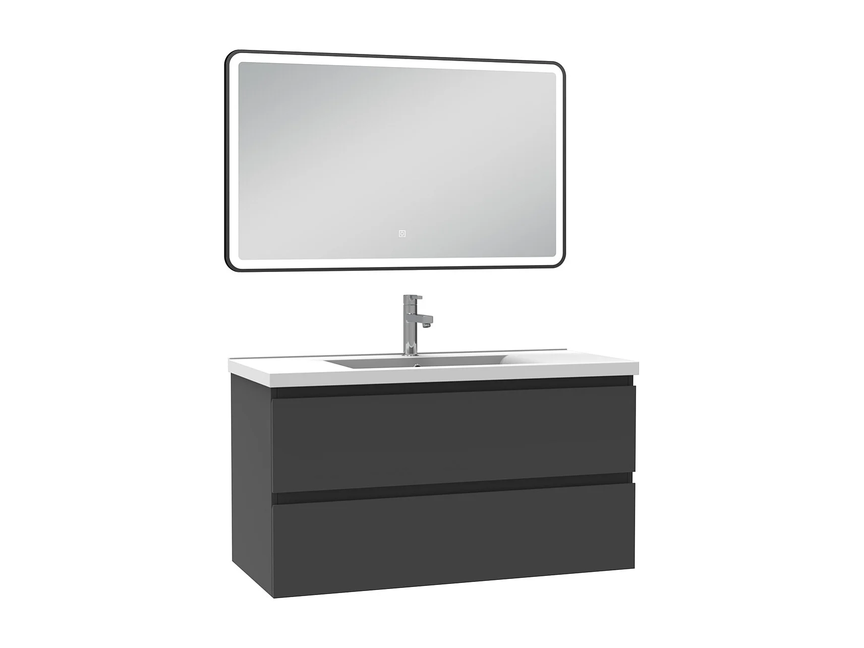 Meuble Salle de Bain 100cm Anthracite simple vasque + miroir lumineux 3 couleurs + dimmable