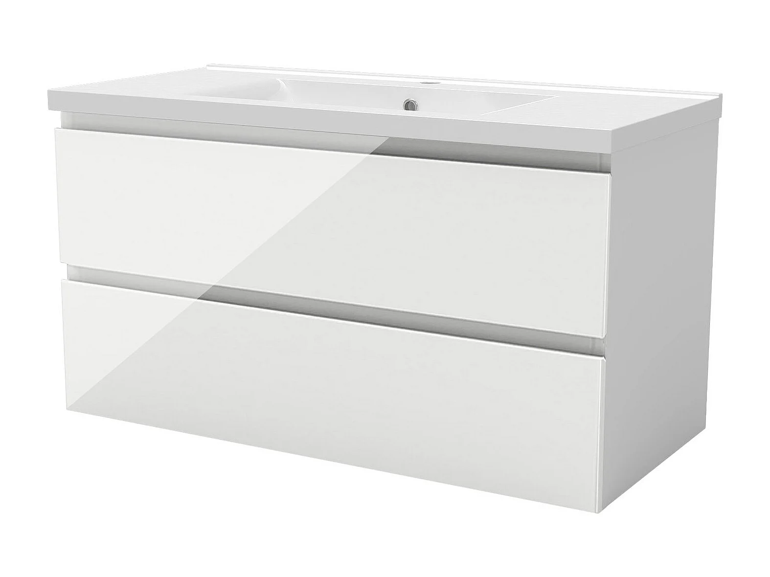 Meuble salle de bain 100cm blanc brillant avec 2 tiroirs à fermeture automatique et simple lavabo céramique