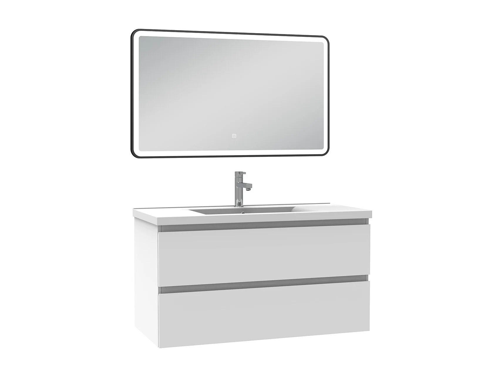 Meuble Salle de Bain 100cm Blanc simple vasque + miroir lumineux 3 couleurs + dimmable