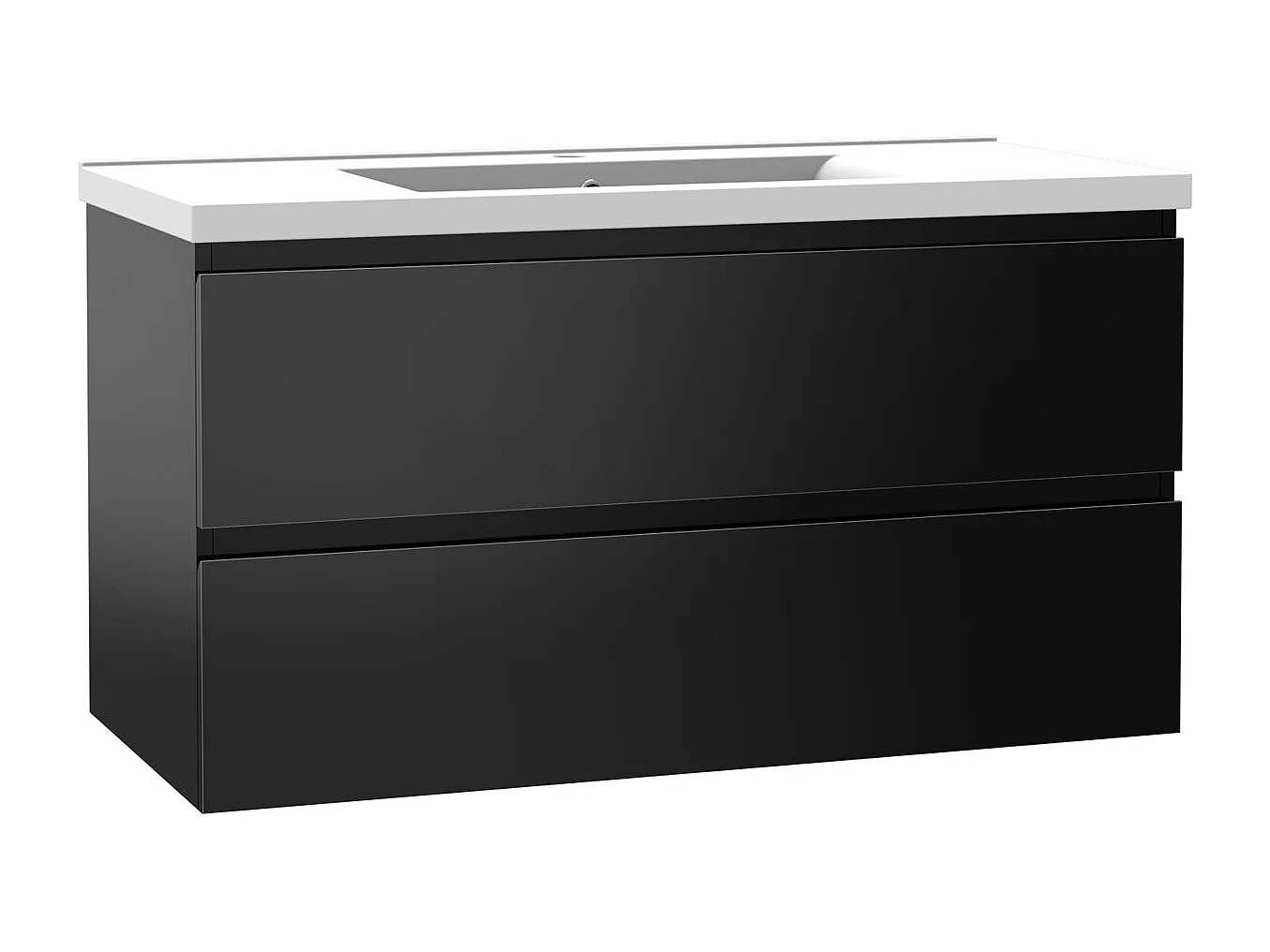 Meuble salle de bain 100cm noir brillant avec 2 tiroirs à fermeture automatique et simple lavabo céramique