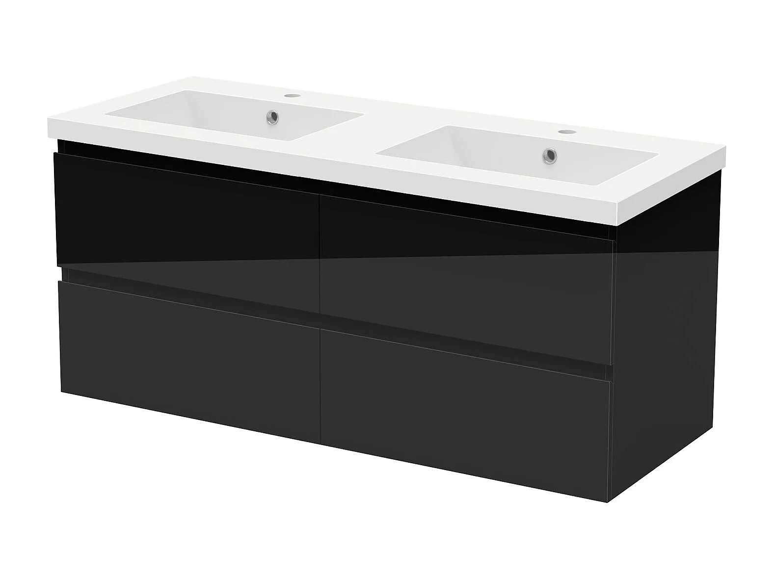 Meuble salle de bain 120cm noir brillant avec 4 tiroirs à fermeture automatique et double lavabo