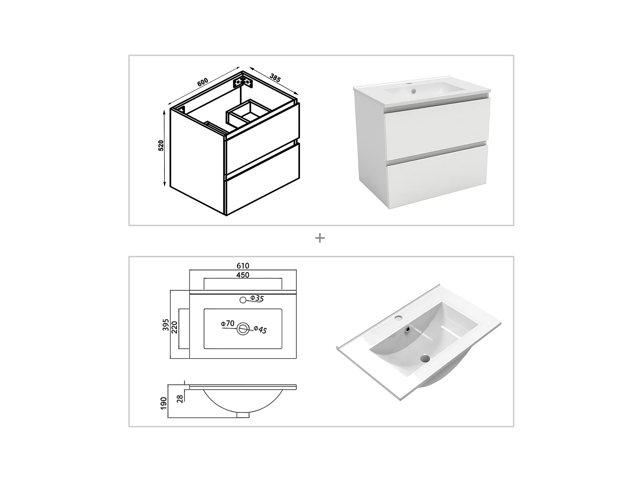 Meuble salle de Bain 60cm avec colonne et miroir 3 couleurs blanc