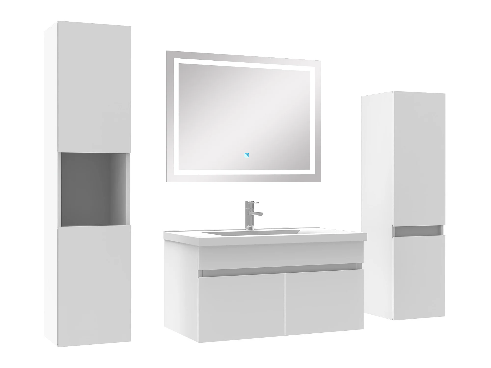 Meuble Salle de Bain 80cm simple vasque + colonne + miroir lumineux Blanc